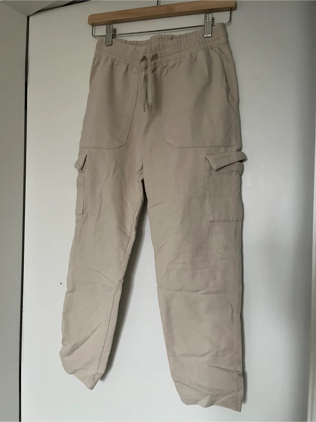 These Patagonia cargo pants are made with organic cotton. They're a size XS and feature a drawstring waist and multiple pockets. These pants are great for casual wear or outdoor activities!