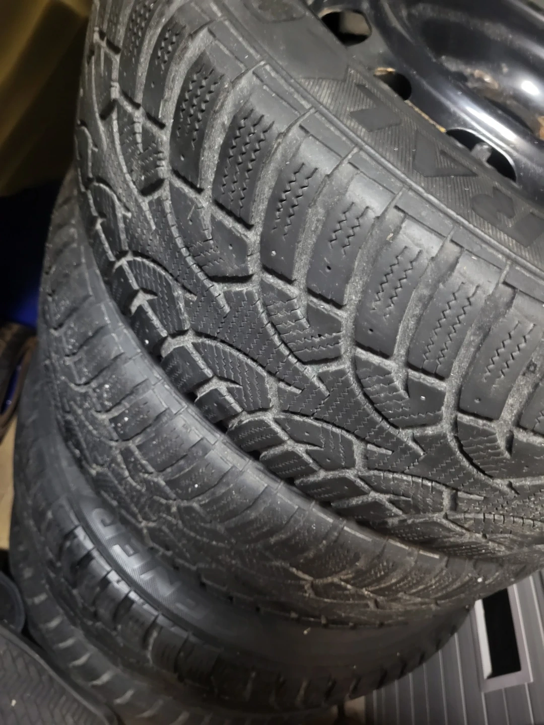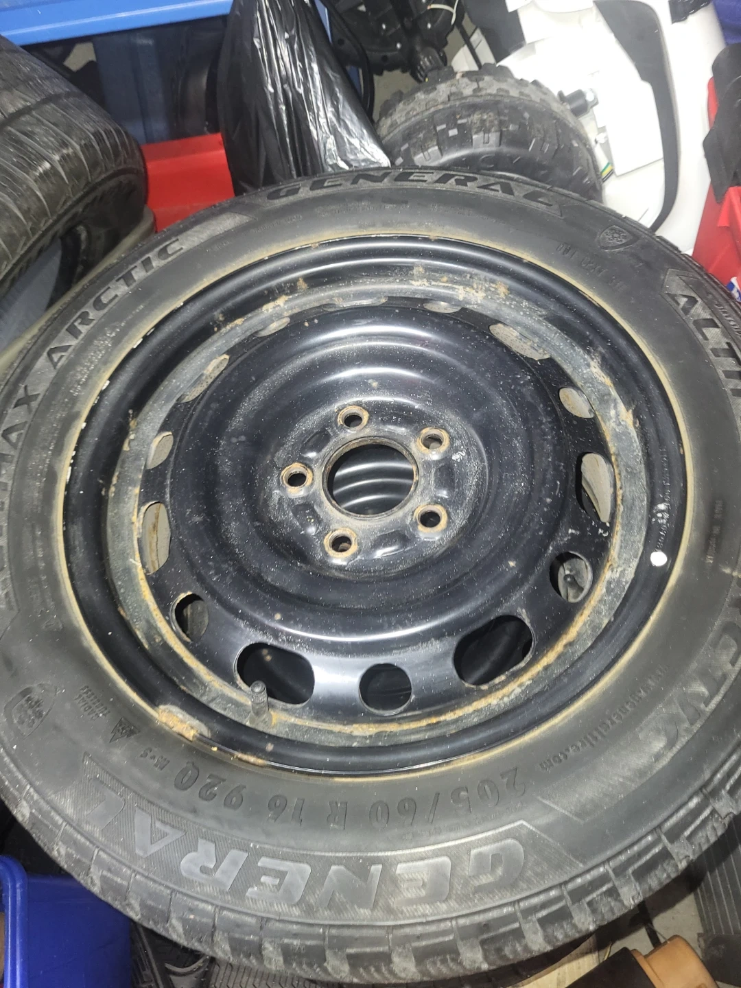 Set of General Altimax Arctic snow tires with steel rims. Tire size is 205/60 R16. These are winter tires for excellent traction in snow and ice.