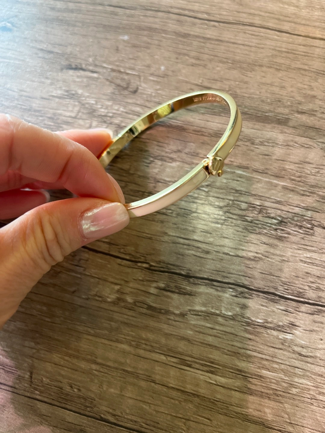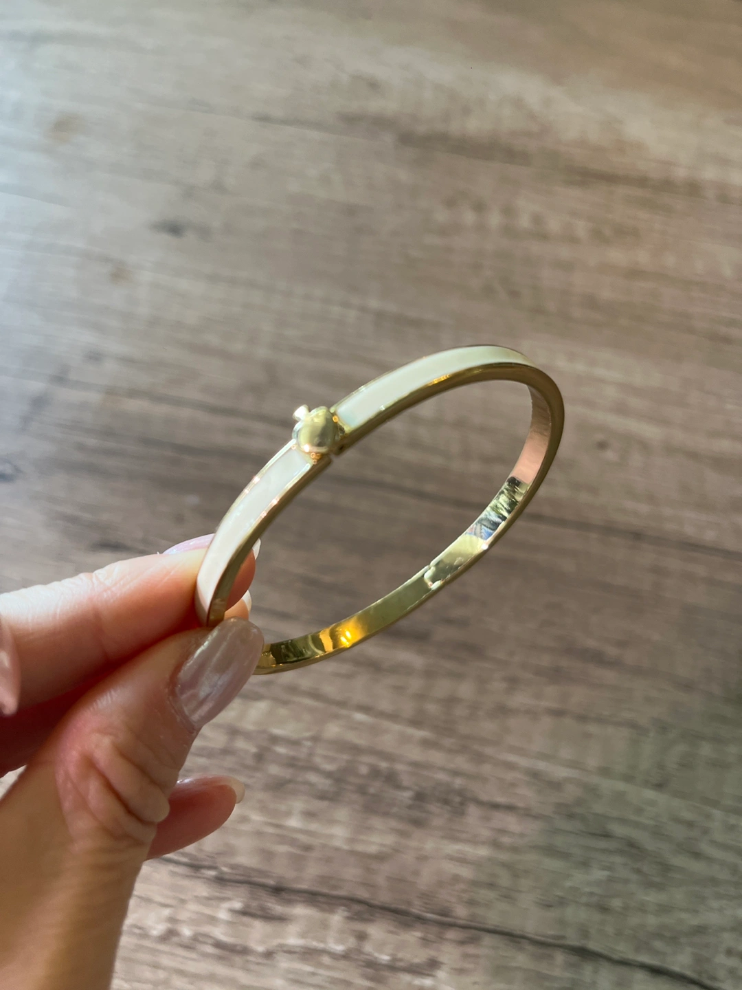 Gold with white/cream trimmings. Lighty worn. Got as gift. Perfect condition