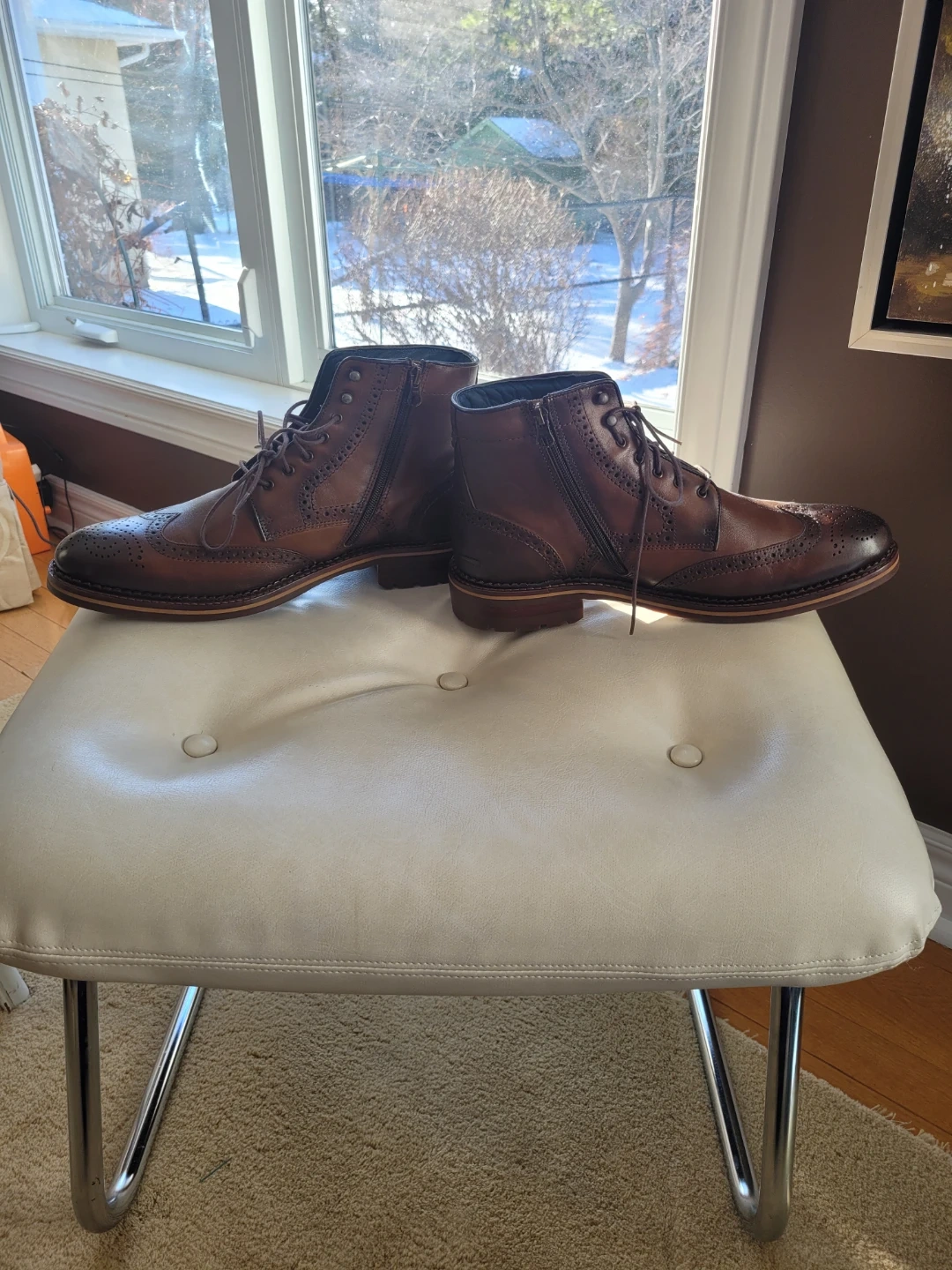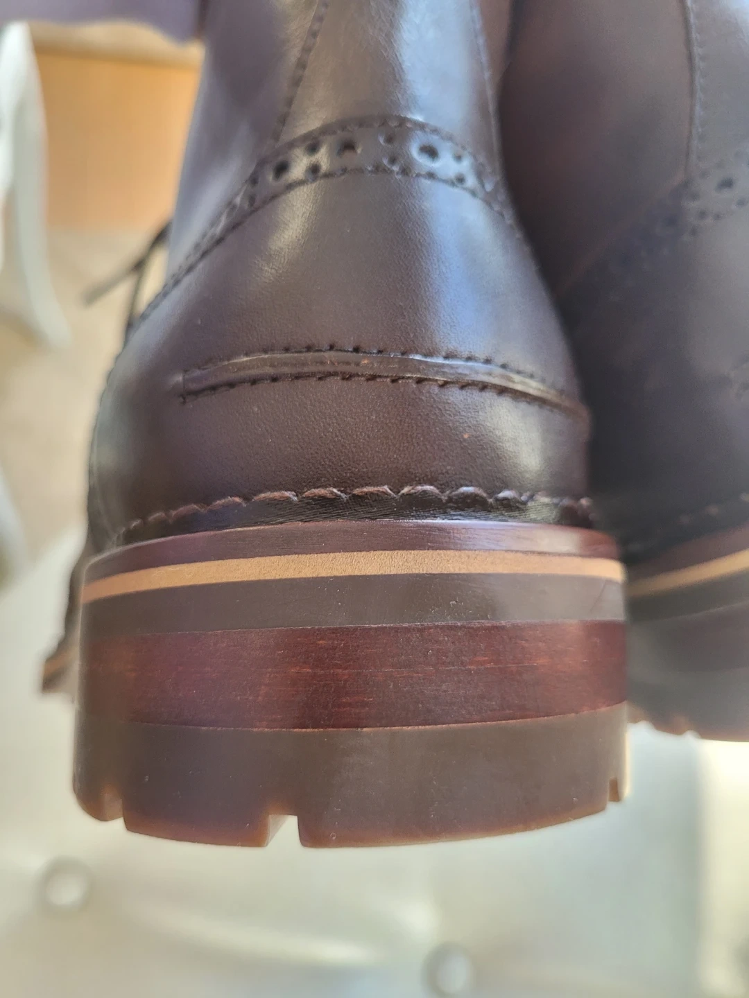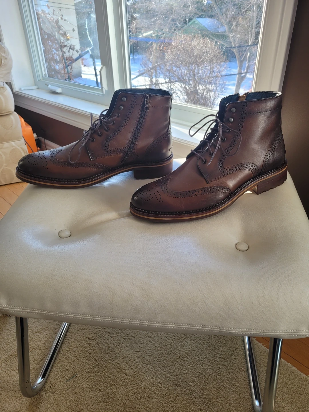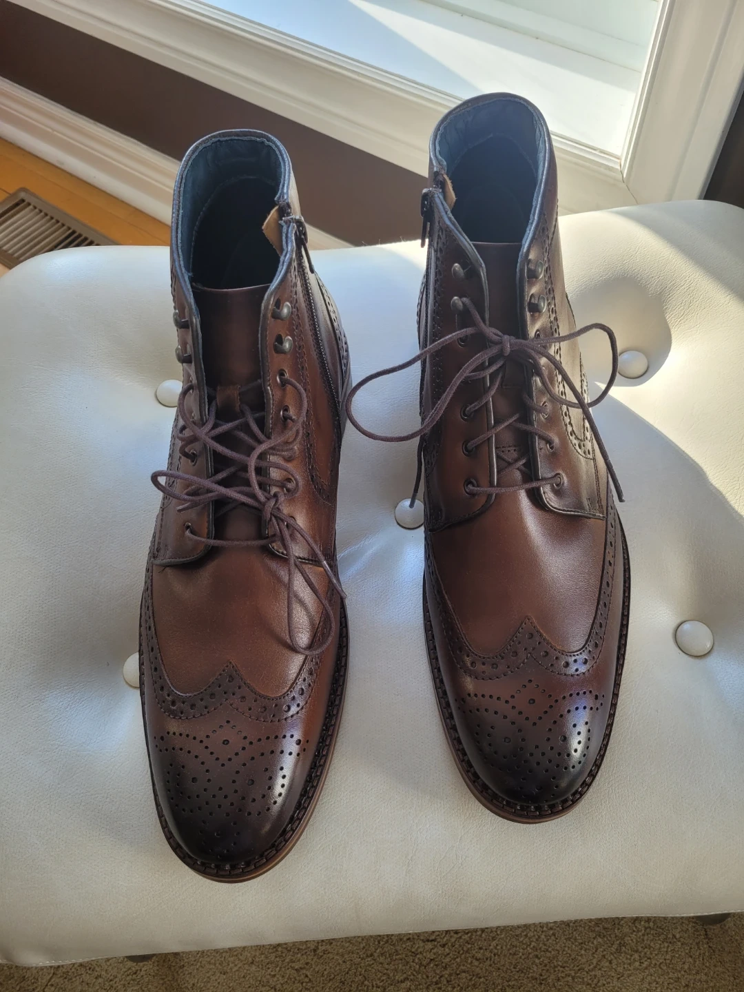 The leather has a nice, rich colour, and the wingtip detailing adds a touch of class, inside zipper.
