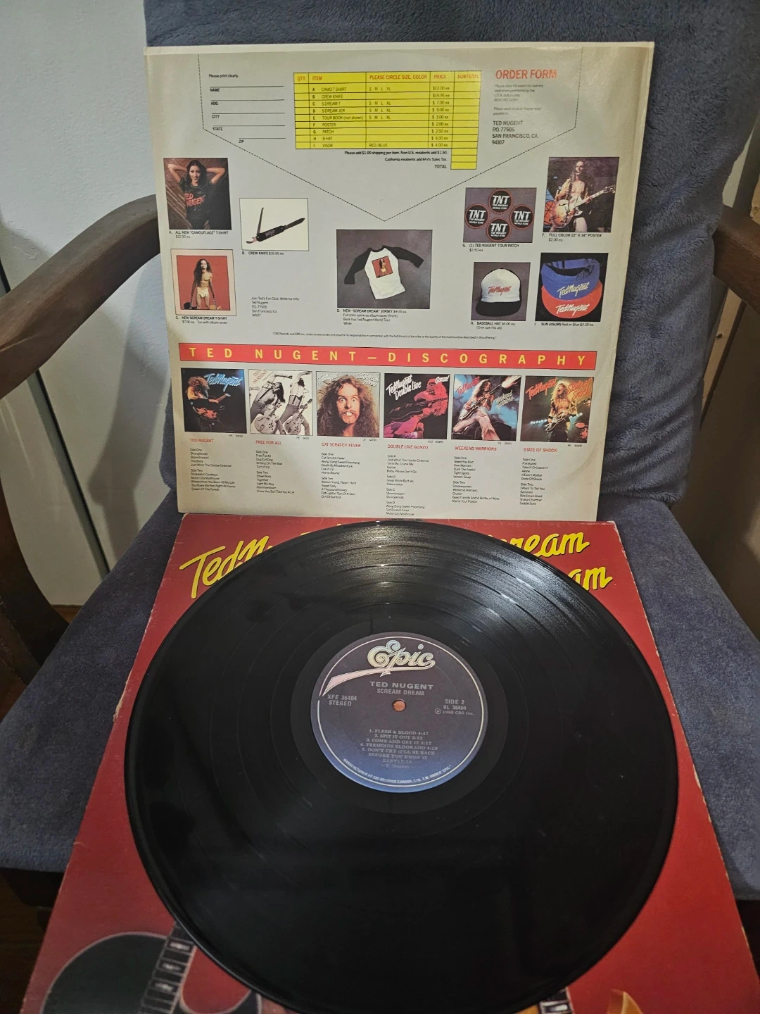 Ted Nugent's 1980 album Scream Dream on vinyl. Features the tracks Wango Tango and Scream Dream. This Epic Records release is a classic for rock fans.