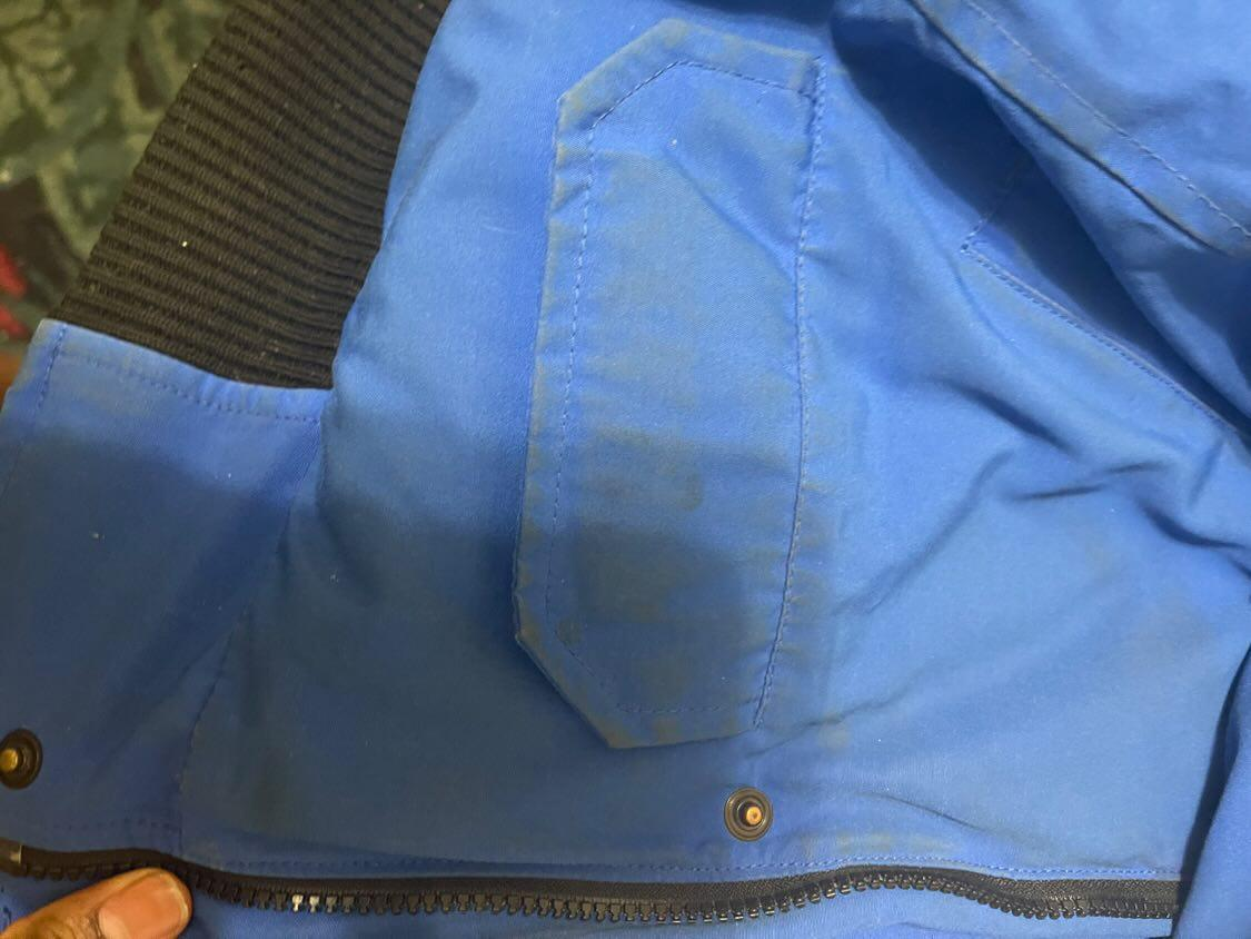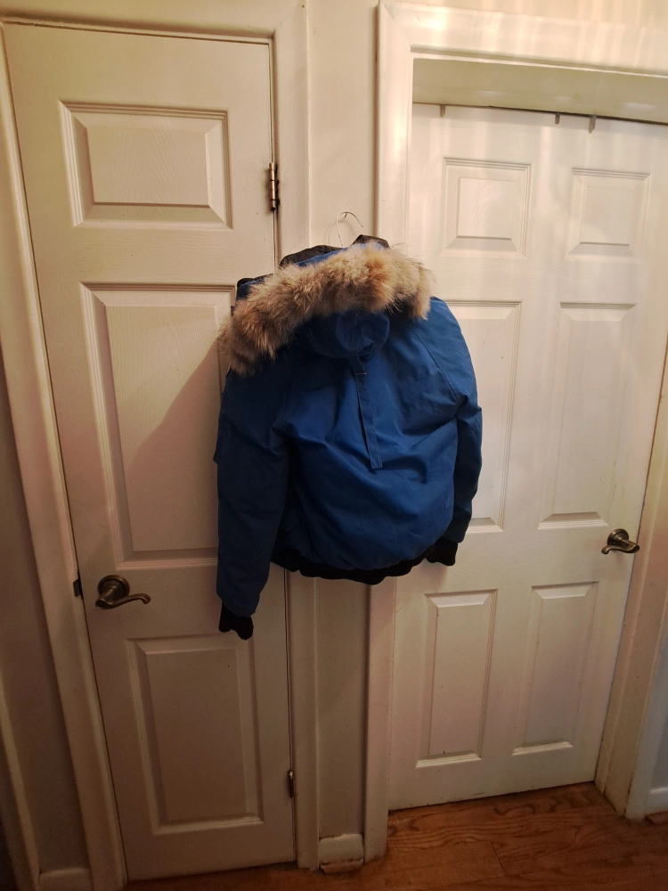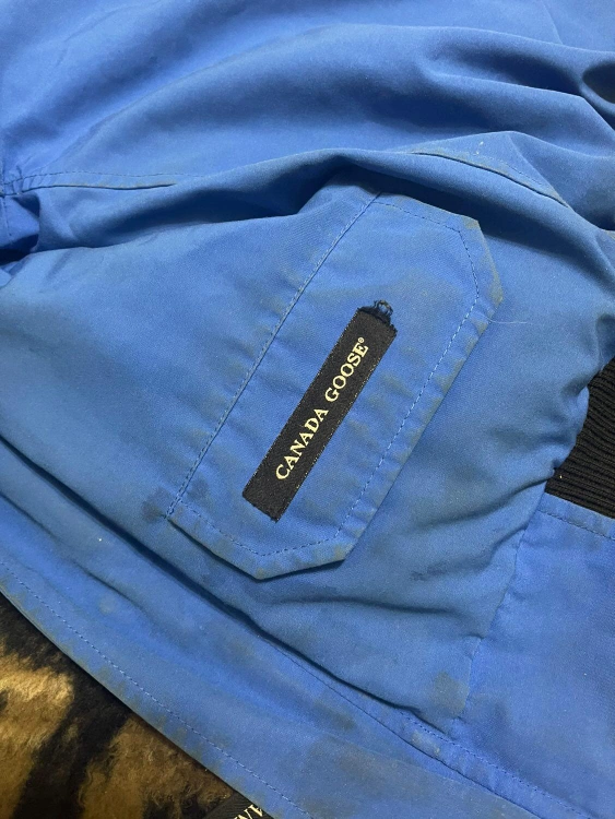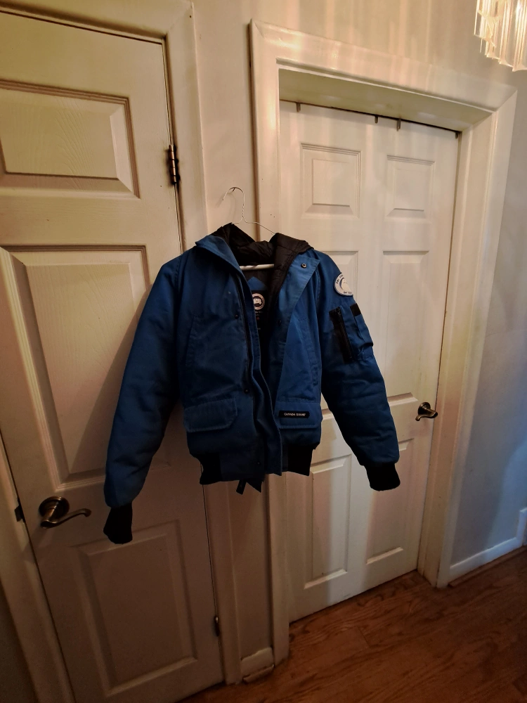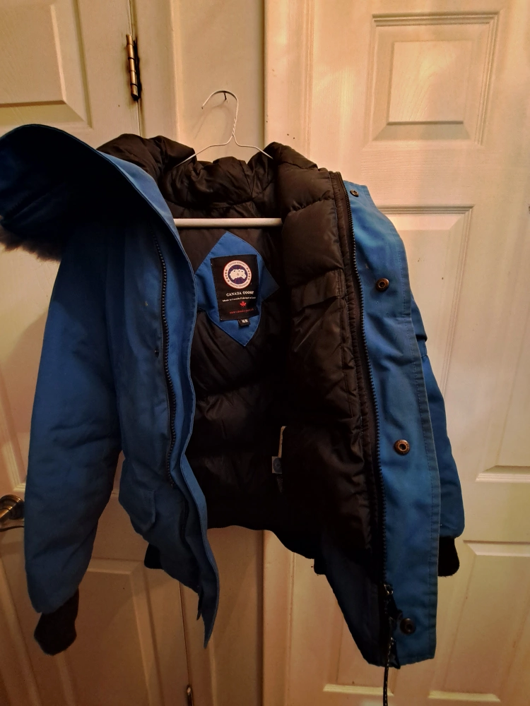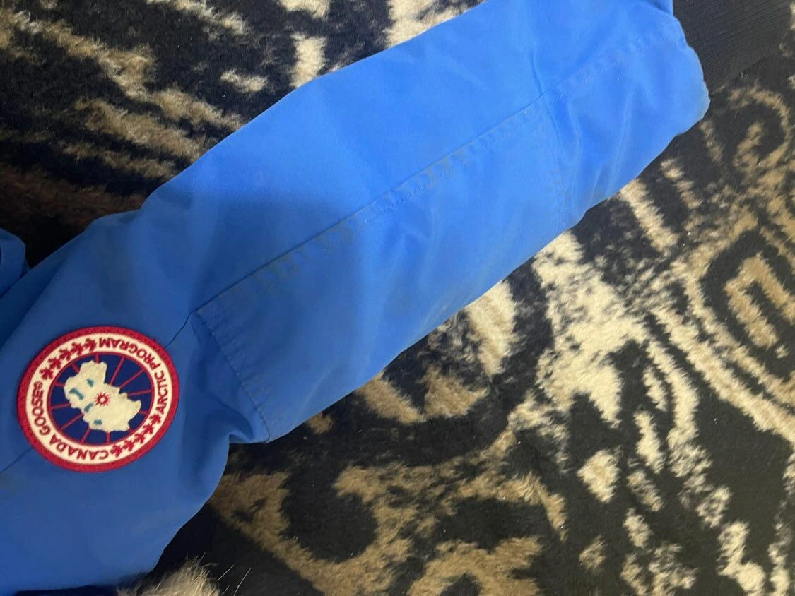 Canada Goose Authentic kids coat size medium for a child 7 to 11 years old. Light blue colour. Used needs to be dry cleaned selling as is no rips or tears. Valued at $450