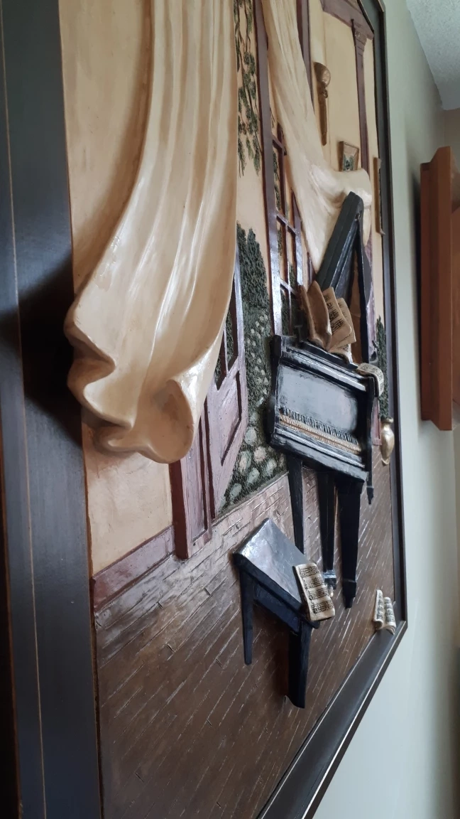 3D painting (bas relief) by Denise Plouffe who was born in Quebec and worked as a sculptor for F.R.E.S.K. International before her passing in 2022.