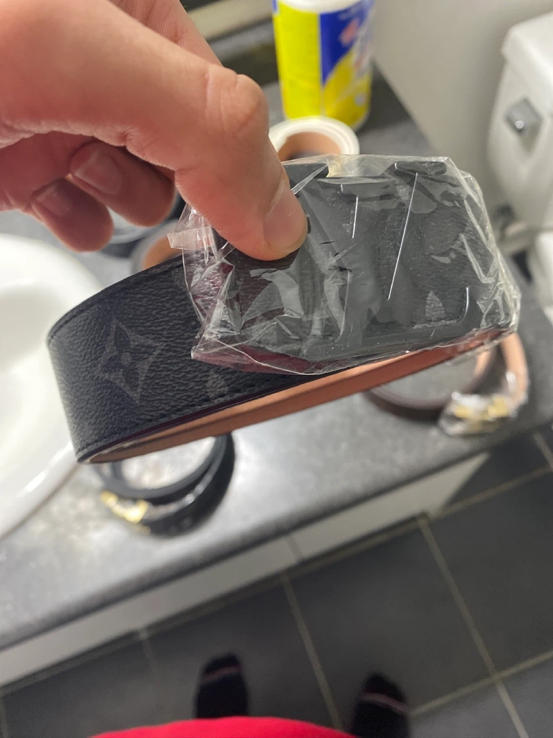 Stylish belt featuring a signature monogram pattern on the strap. It has a sleek black buckle closure. This accessory's classic design makes it suitable for dressing up or down.