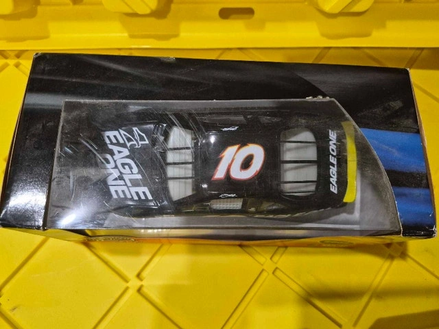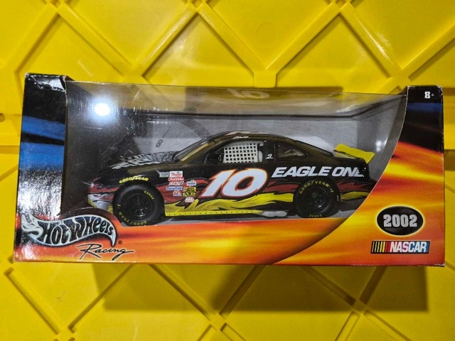 Relive the thrill of NASCAR with this 2002 Hot Wheels Racing #10 Johnny Benson 1/24 scale diecast car. This collectible is in excellent condition, encased in its original packaging, capturing the spirit of the track and the legacy of a racing icon. It's a great addition to any collection, showcasing vibrant colours and authentic detailing. The car is used and has been kept in its original packaging. Cash accepted.