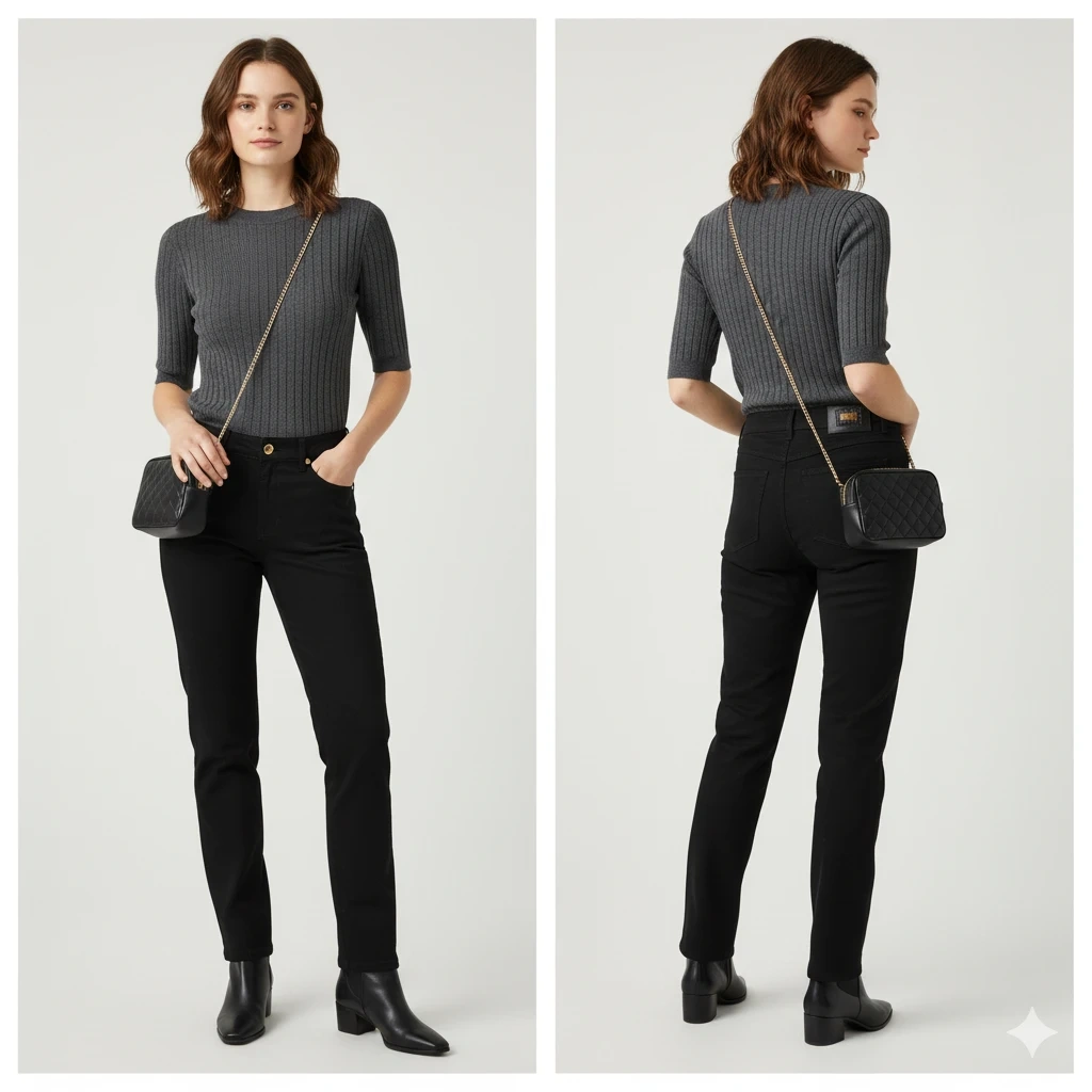 ​Cut: Flattering straight-leg fit with a mid-to-high rise.