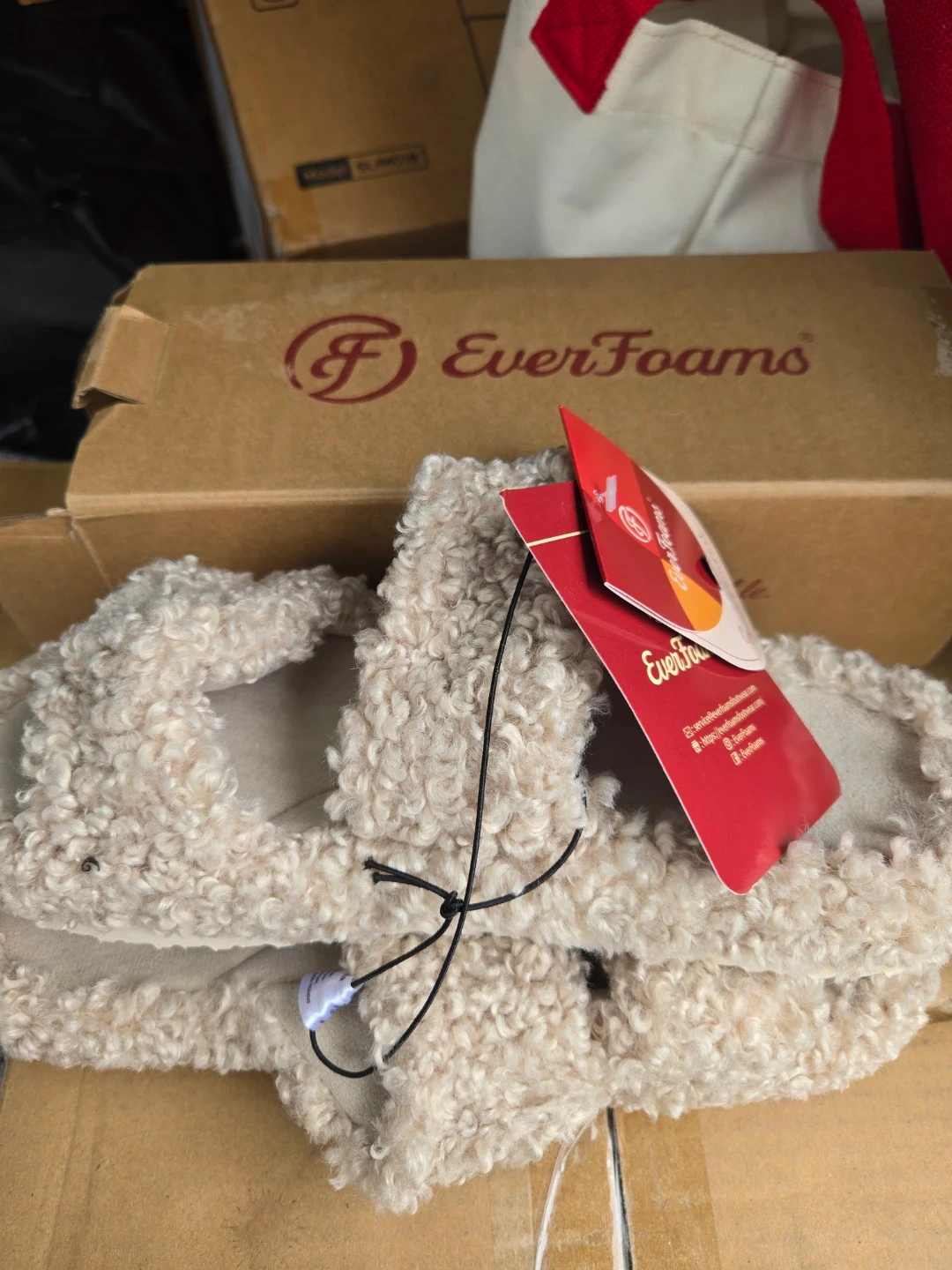 These fuzzy open-toe slippers from EverFoams are so cozy! They're made with a 100% polyester upper, insole, and lining. The outsole provides comfort for indoor wear. Great for lounging around the house!