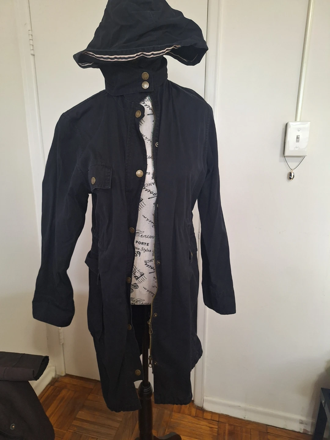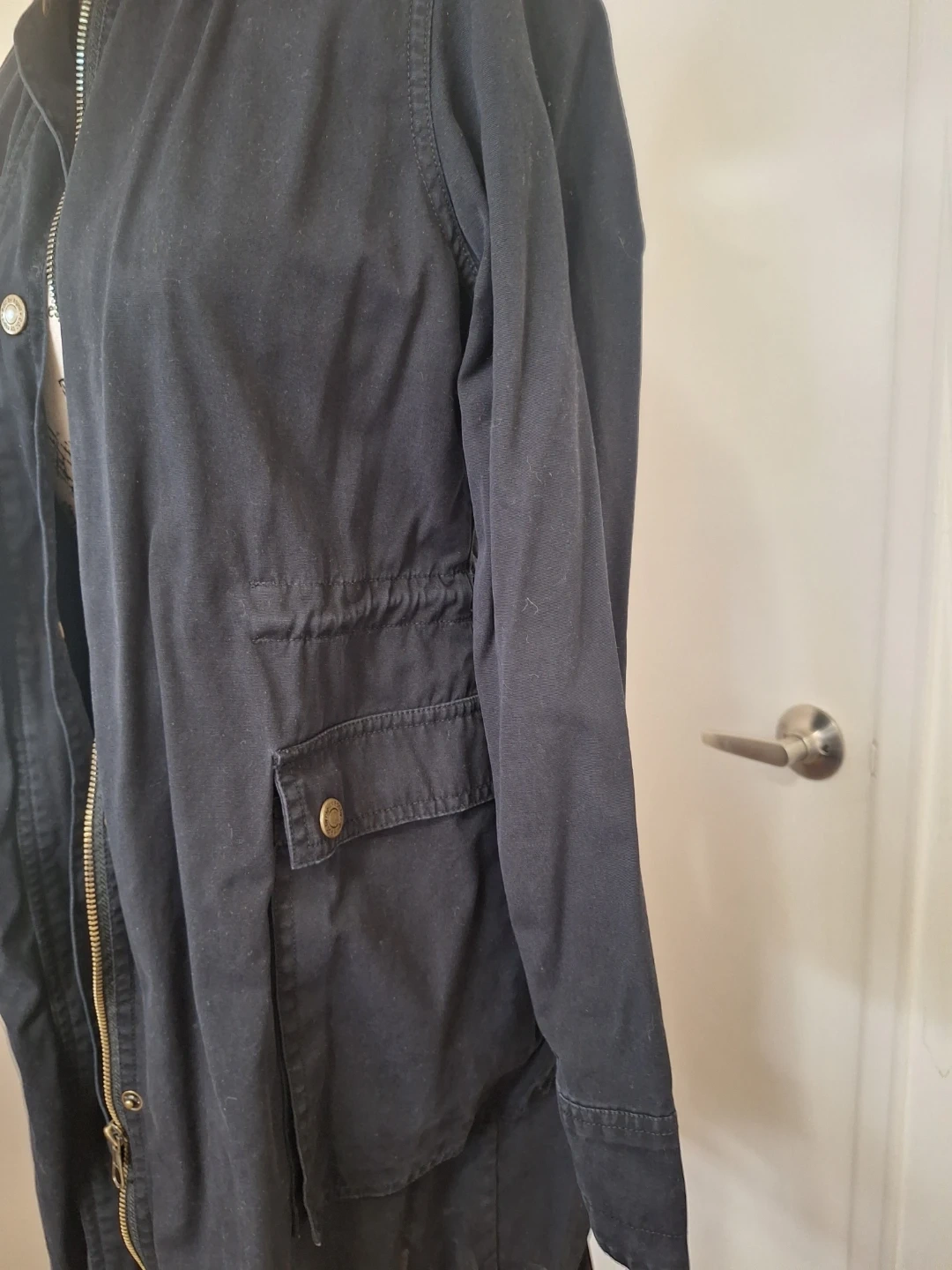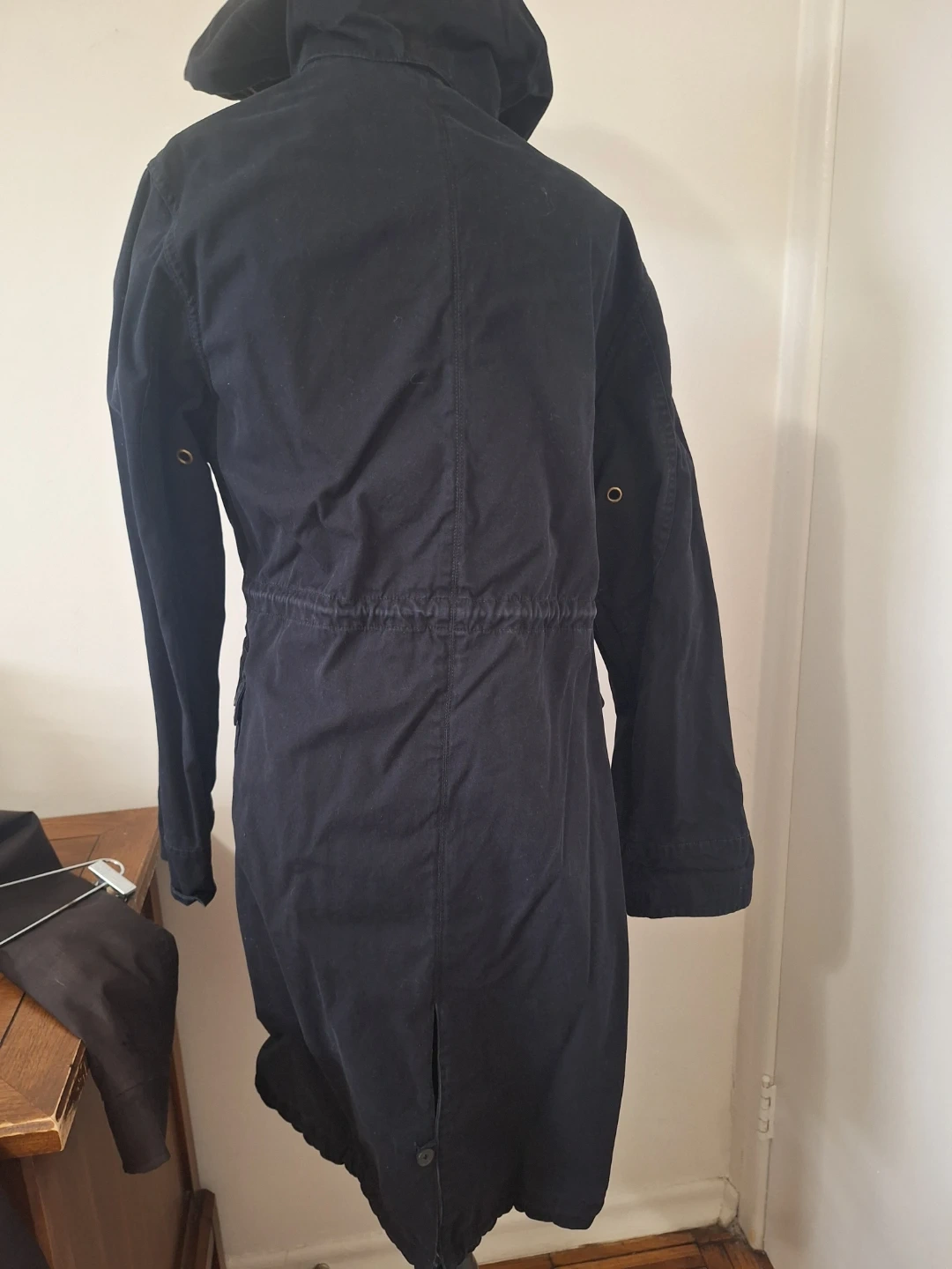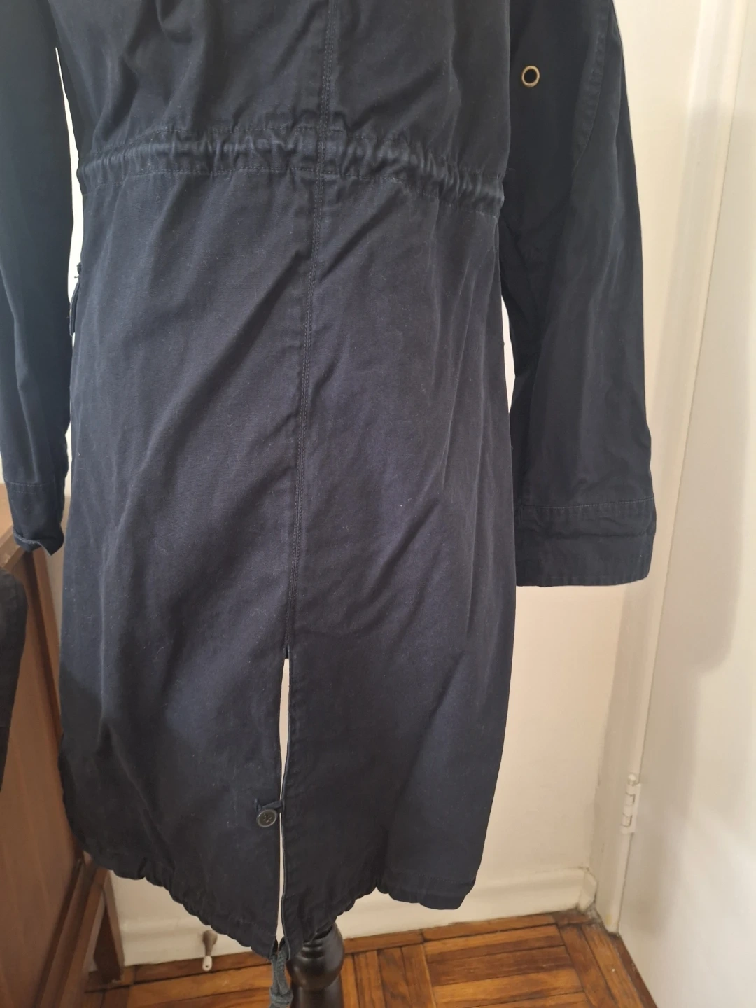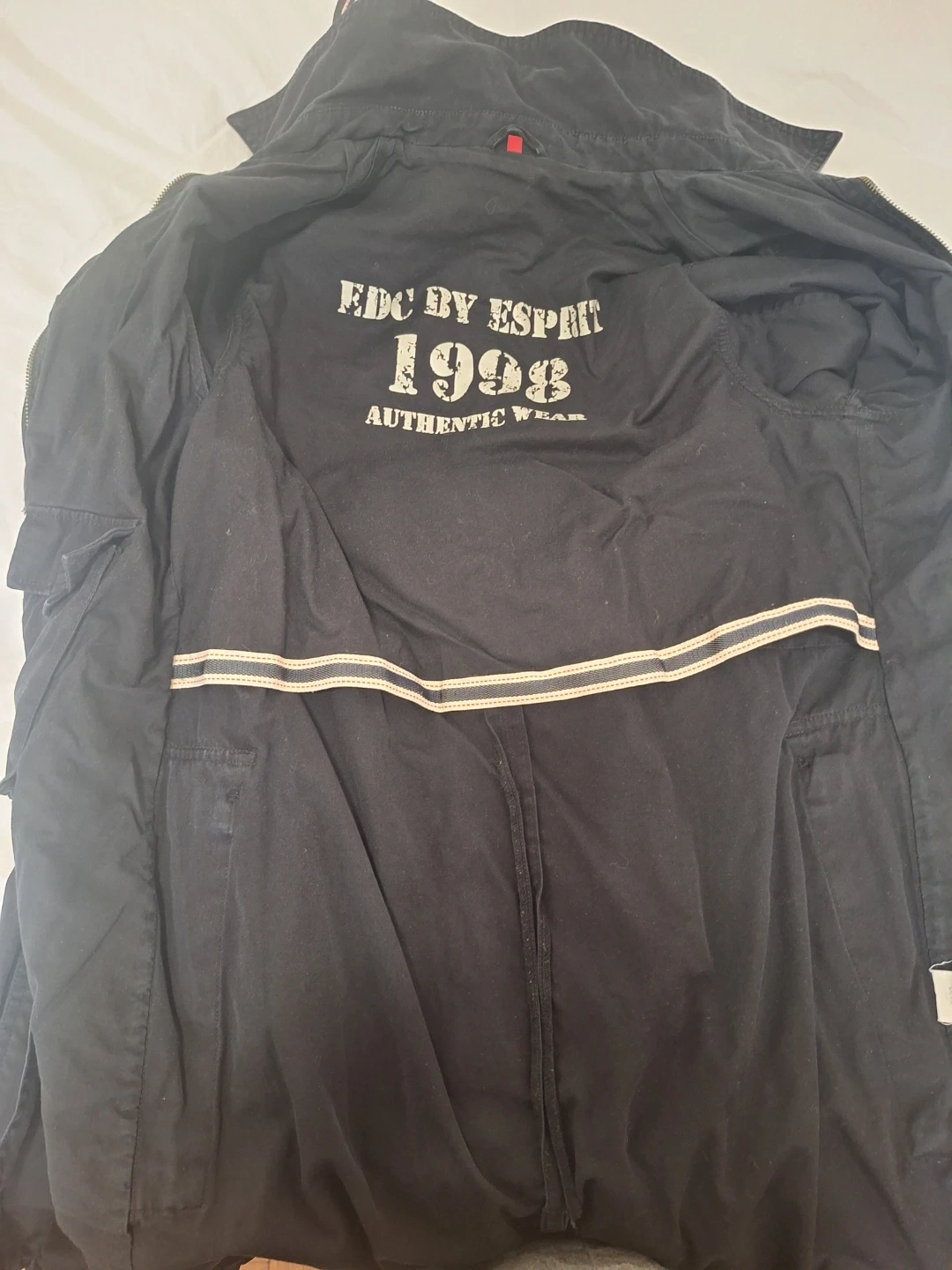 This is a black hooded parka jacket from EDC by Esprit. It features a full zip closure and multiple pockets. It's a classic piece for everyday wear. 100 % cotton!. This is a really kool jacket.