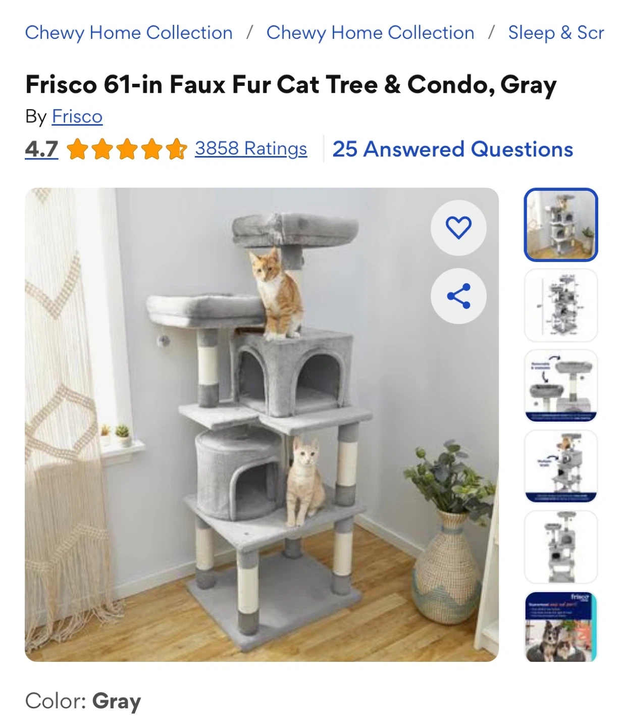 Frisco 61-in Faux Fur Cat Tree & Condo, Gray