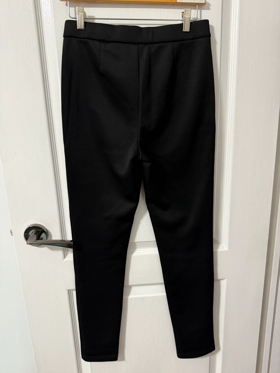 Selling a pair of black slim-fit pants. These pants are in great condition and are a versatile addition to any wardrobe. They're perfect for both casual and more dressed-up occasions. The sleek black colour makes them easy to match with anything