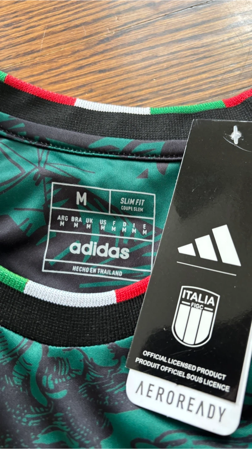 Green and black special edition soccer jersey. Collaboration between Italy, Stussy, and Adidas. Features Aeroready technology. Size medium. Slim fit. Comes with TAG STILL ON. Brand New.