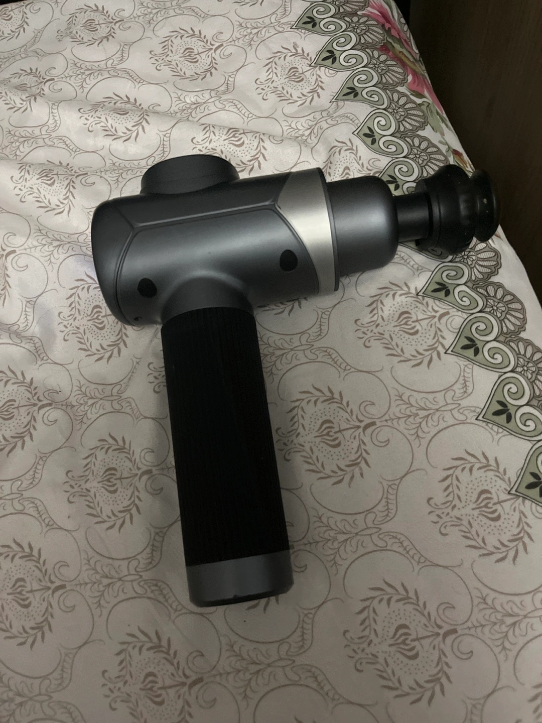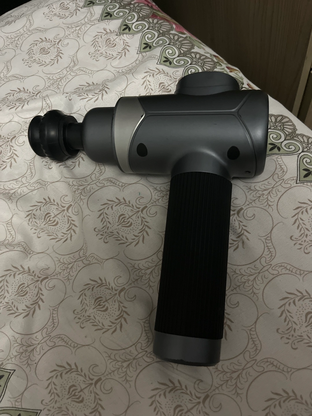 Handheld massage gun. Multiple speed settings. Grey and black colour. Used but in good condition.Also comes with all parts