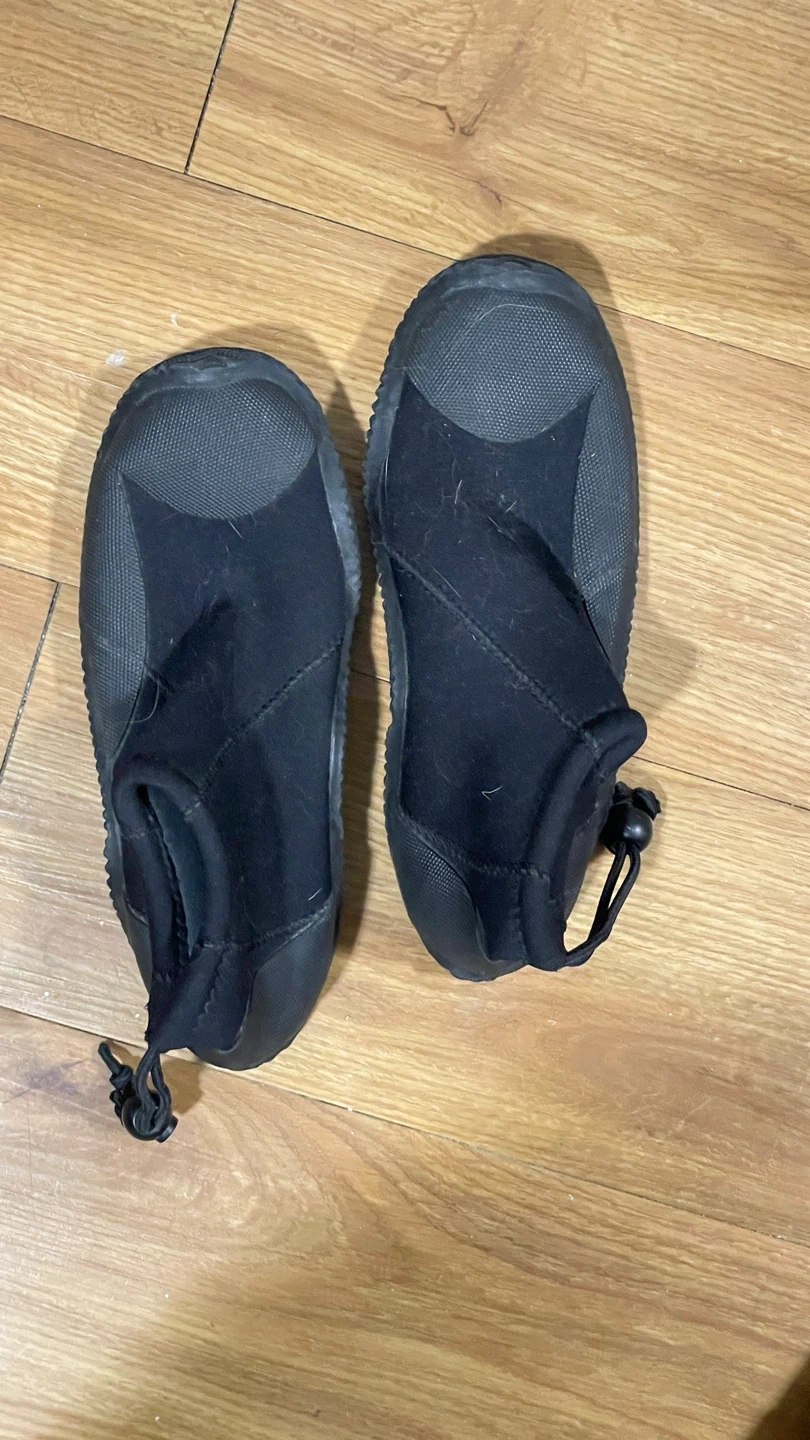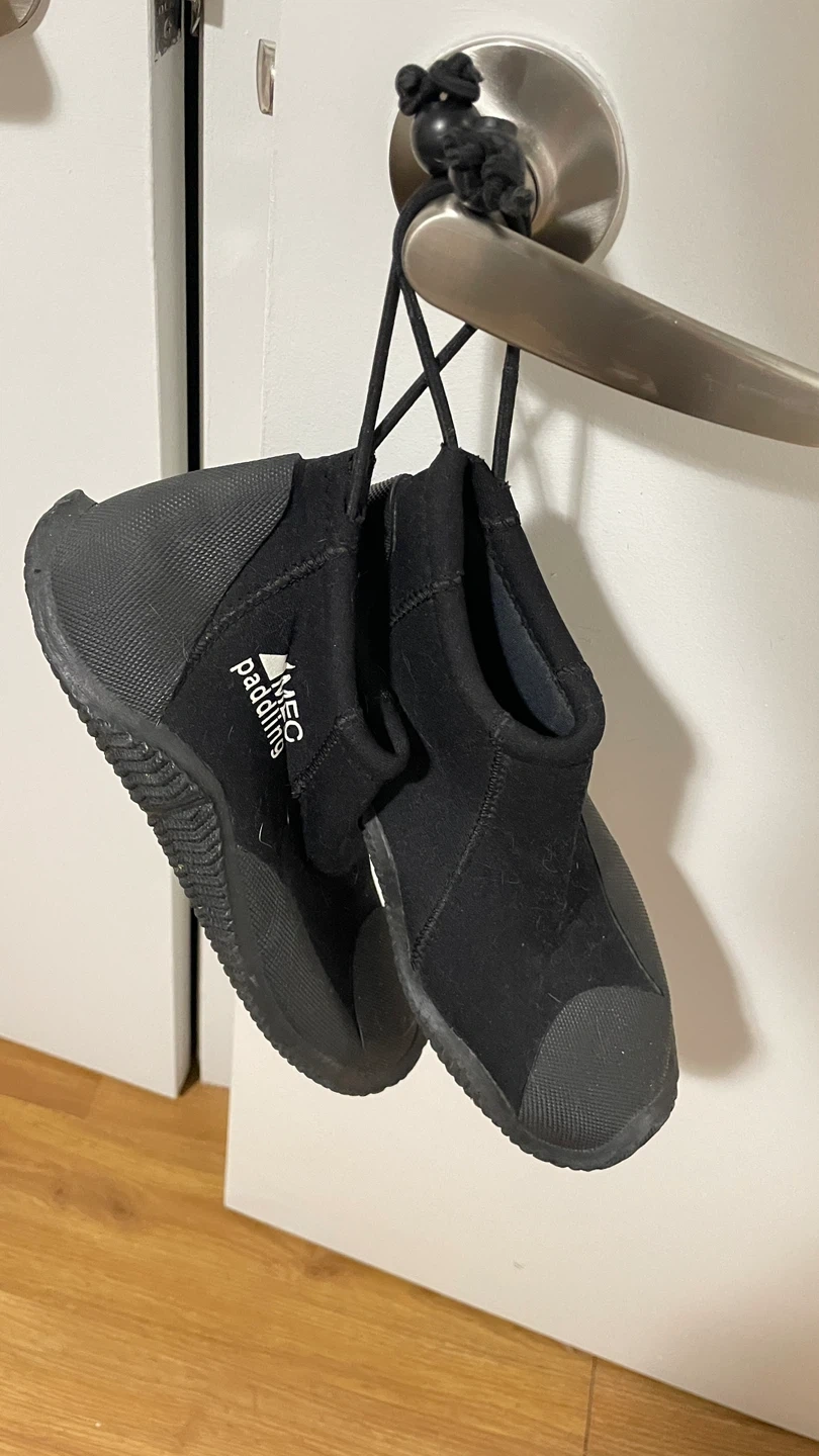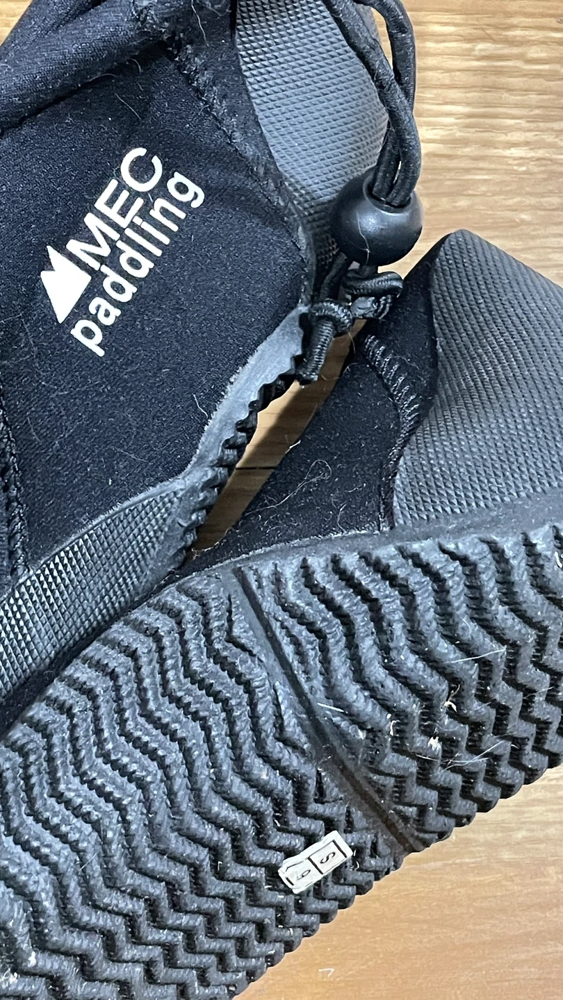 These MEC Paddling water shoes are black and size S. They feature a durable rubber sole and a neoprene upper. Perfect for kayaking or canoeing! Used for one paddling season only.