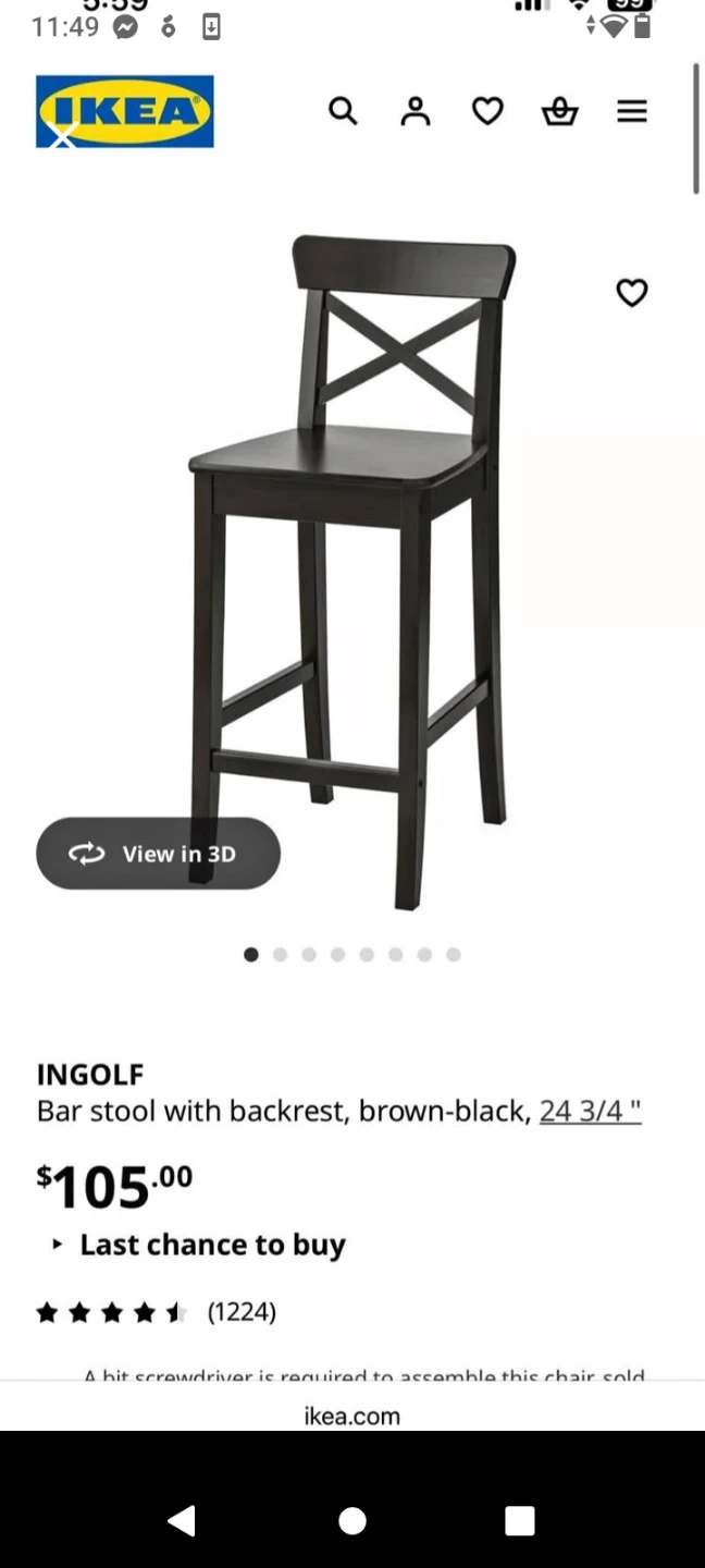 BNIB IKEA Ingolf Bar Stool with Backrest