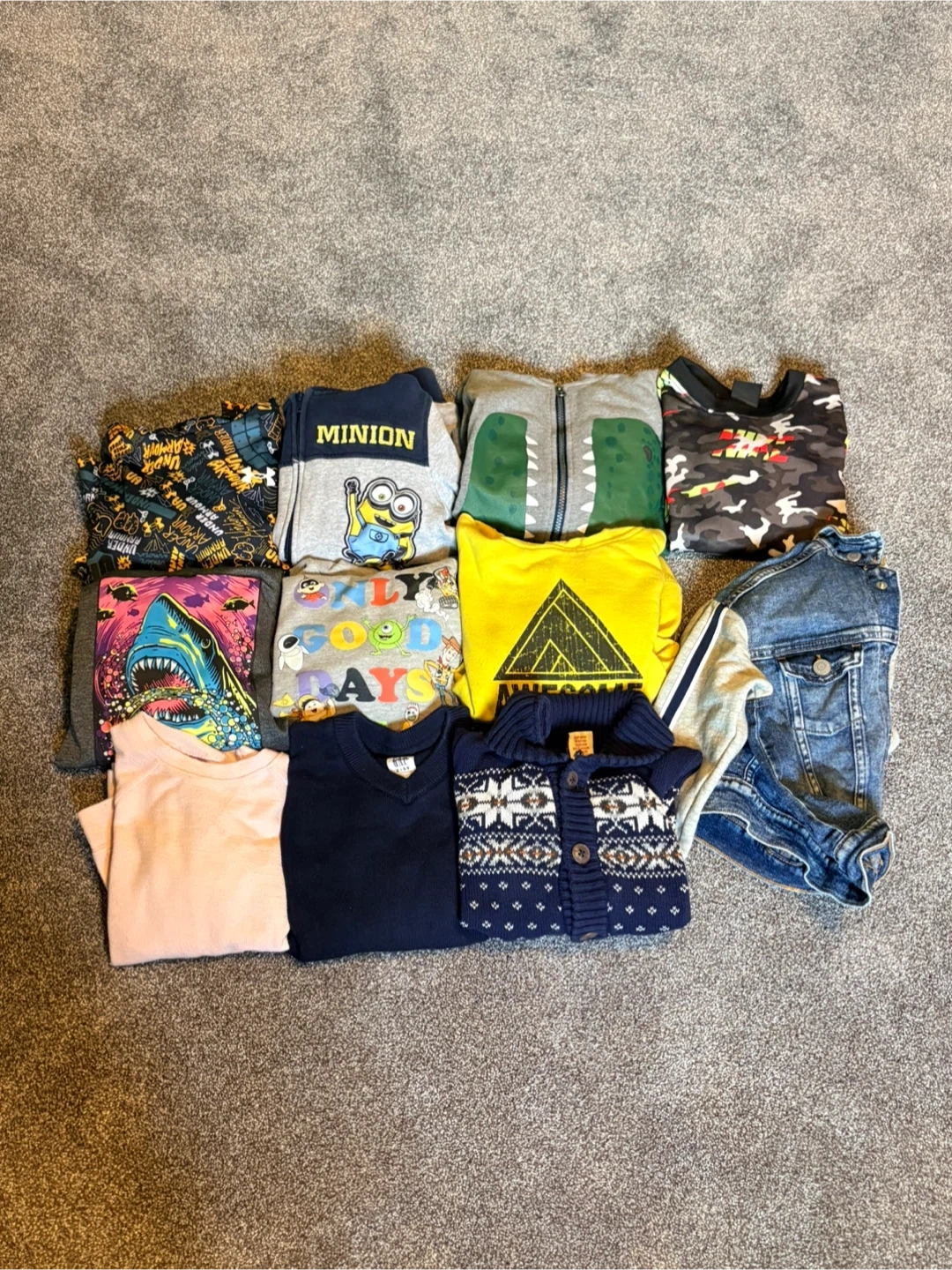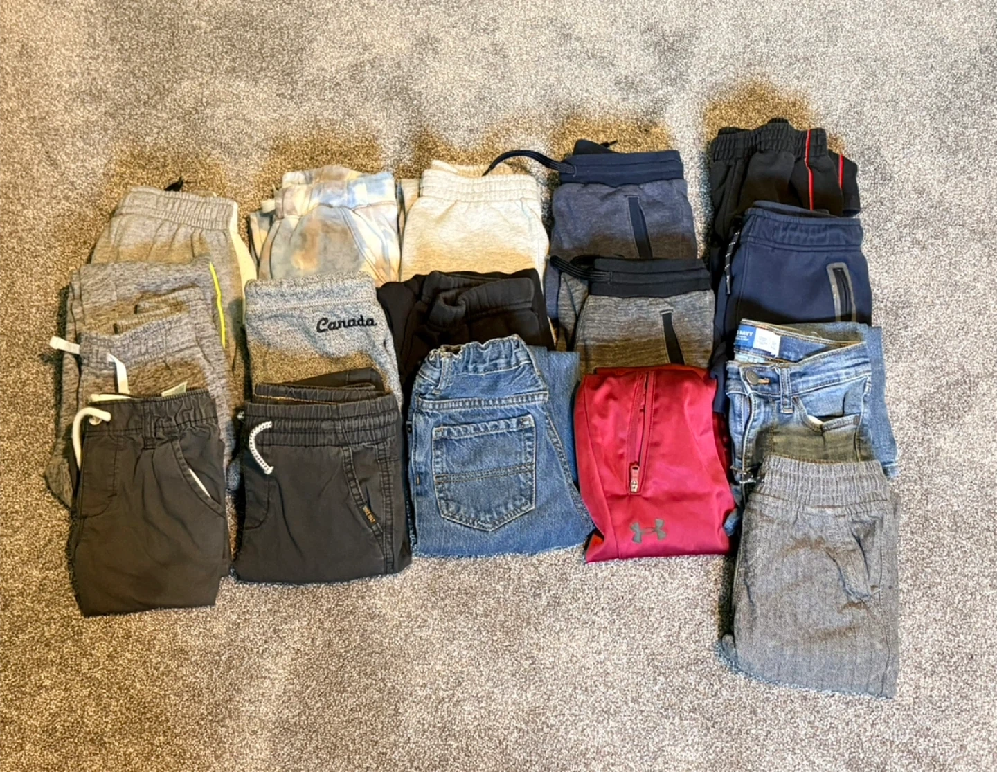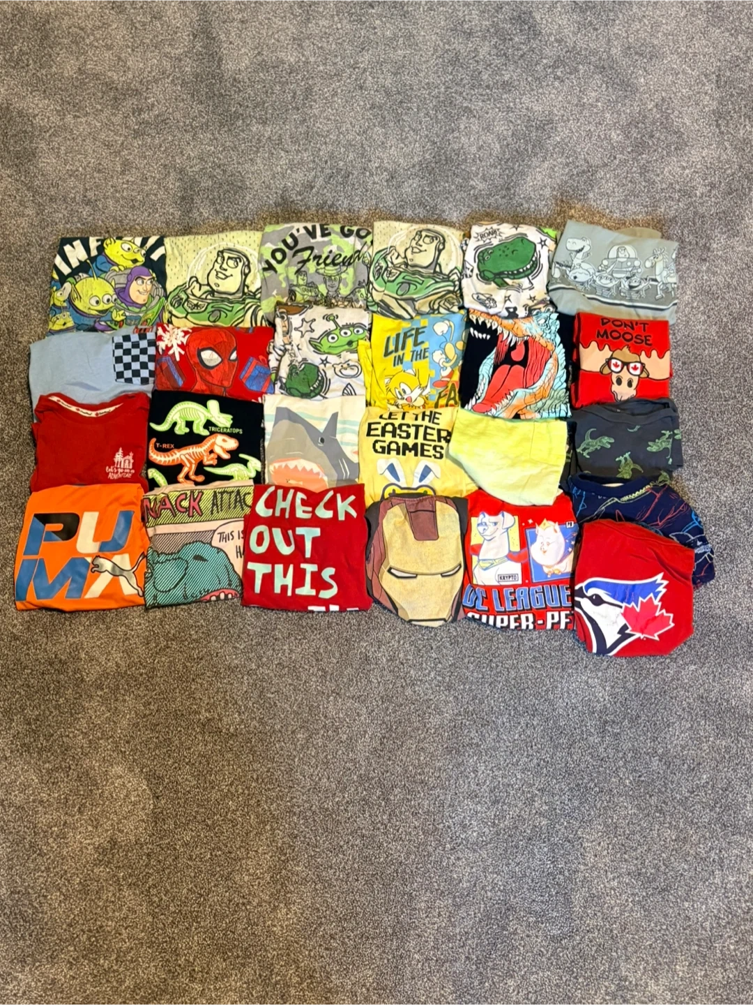 Selling a large bundle of kids' clothing. There are a variety of t-shirts, pants, and jeans included. Sizes and brands vary. Perfect for stocking up!