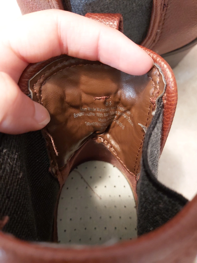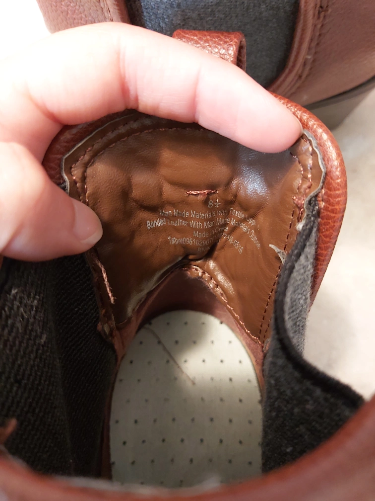 Composition/material: Man made material with textile upper, bonded leather with man made materials outsole