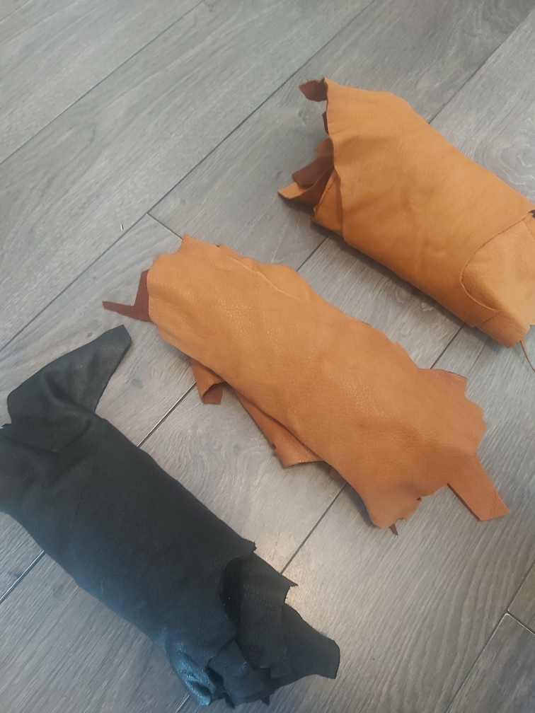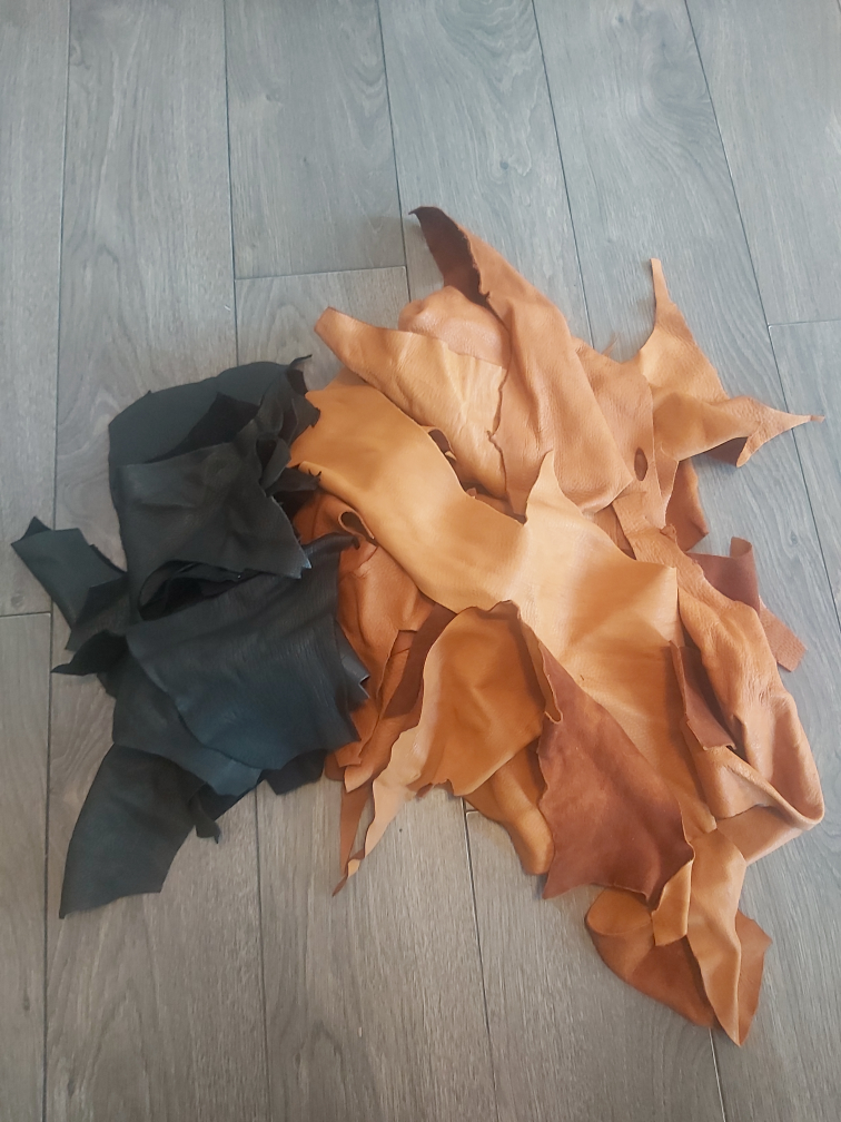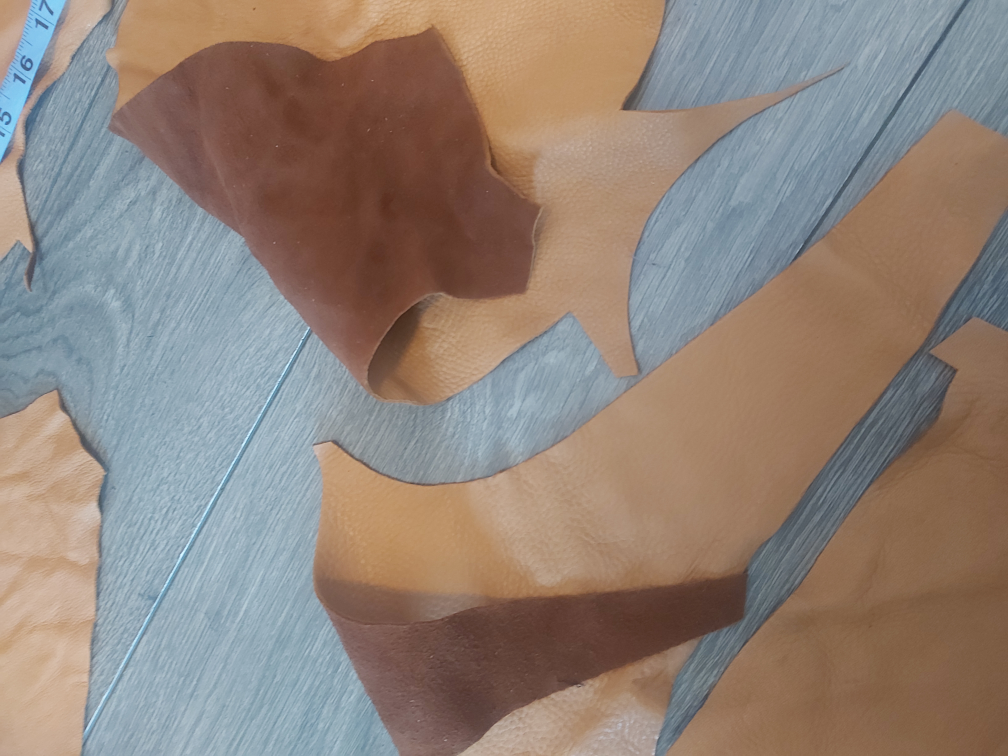 226leather Remnants for craft projects. tan and black different sizes. 1lbs