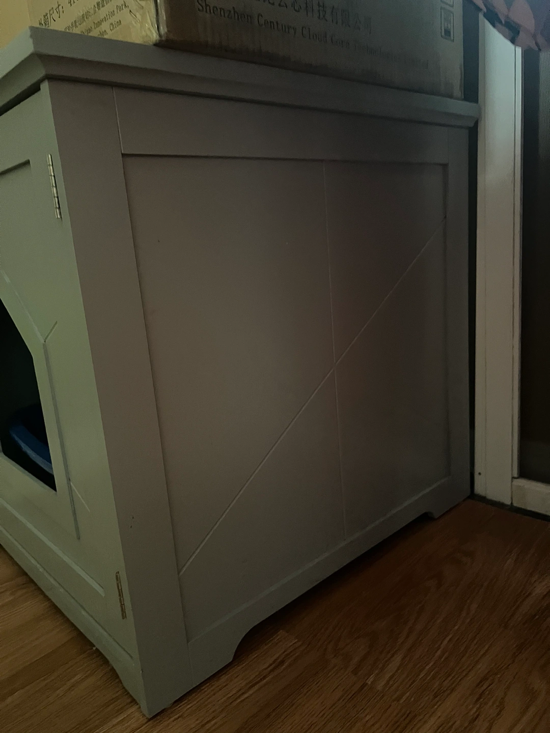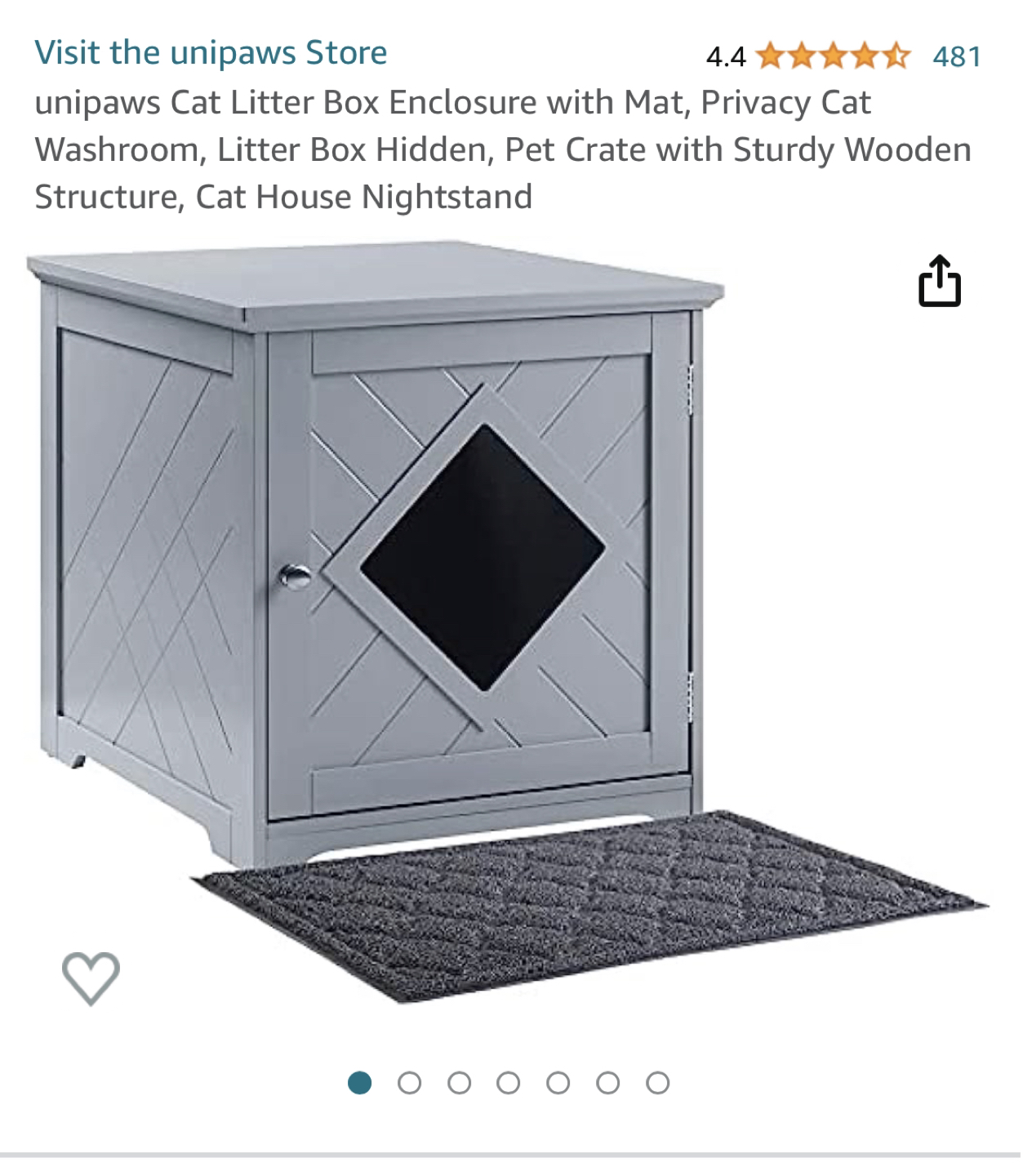 Beautiful litter box enclosure in great condition. Purchased from Amazon for over $200. The knob is missing. Also included the picture from a similar one sold by the uu same seller.
