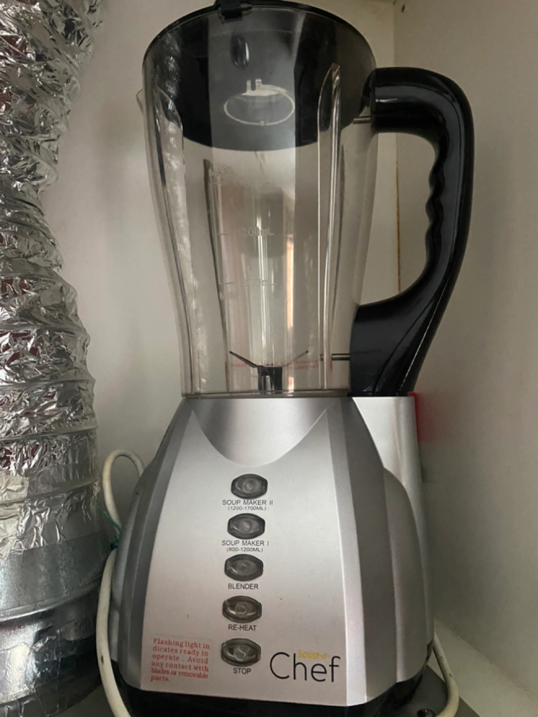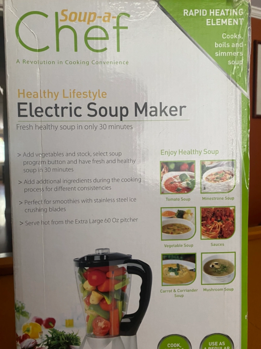 Makes fresh healthy soup from start to finish in one operation. Cooks, boils, and simmers hot soup. Use as blender for perfect smoothies or cold drinks. Extra large 1.7L capacity pitcher with stainless steel ice crushing blades. Gently use in great condition. Moving sale. Will consider reasonable offer or trade.