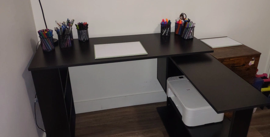 Corner desk that rotates into three different positions. The desk is in new condition with NO damage, was loved and well cared for. Non-Smoking home.