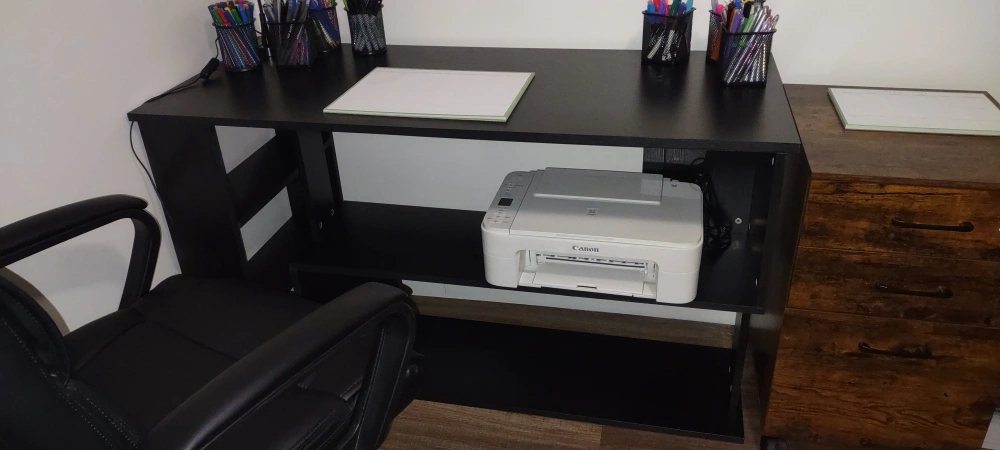 Lots of storage and shelving, space for a computer, printer, books ect.
