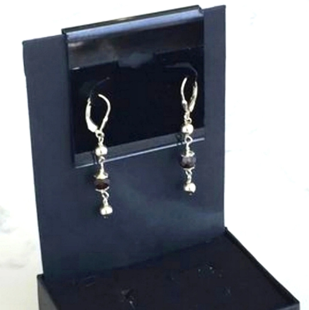 VINTAGE Natural Amethyst Stone w/925 Silver Beads Lever Back
