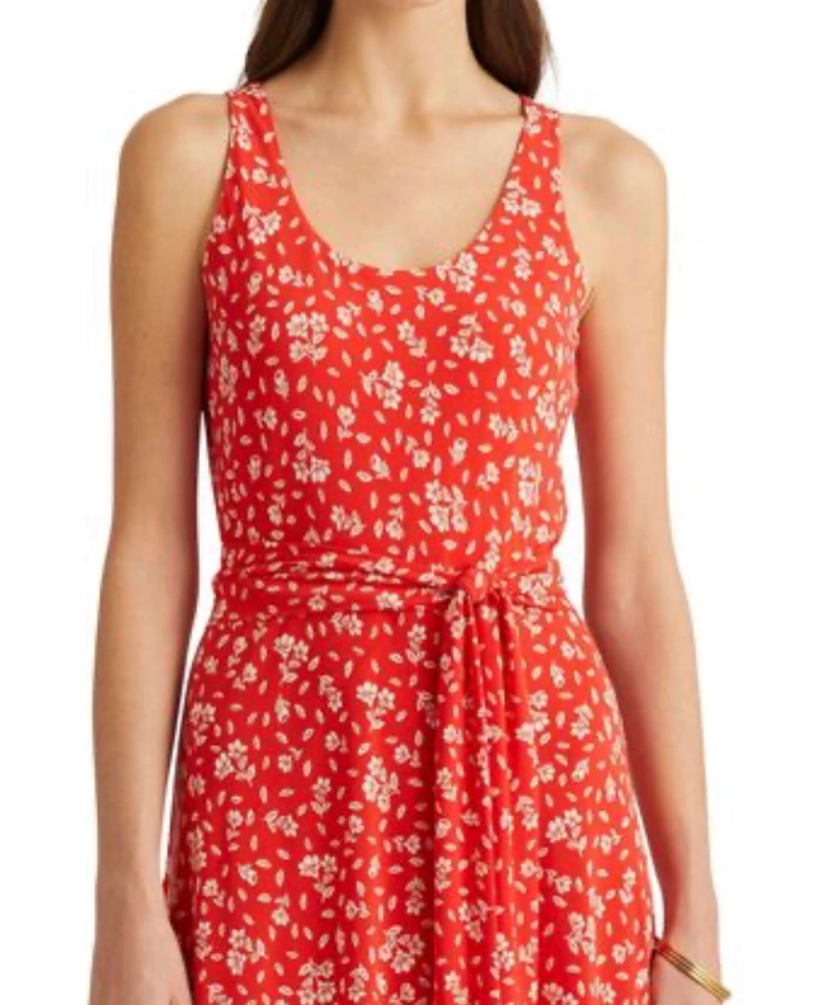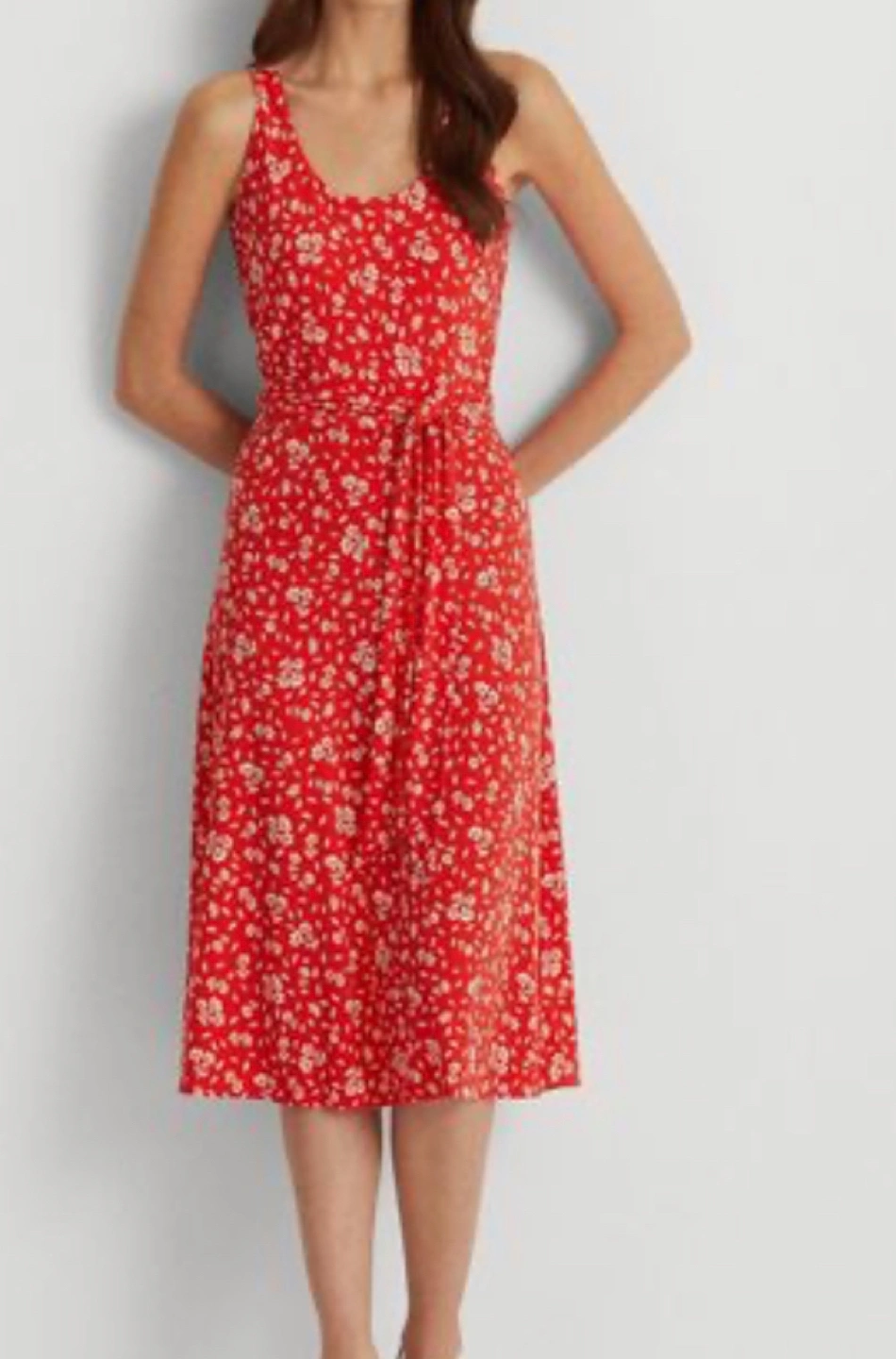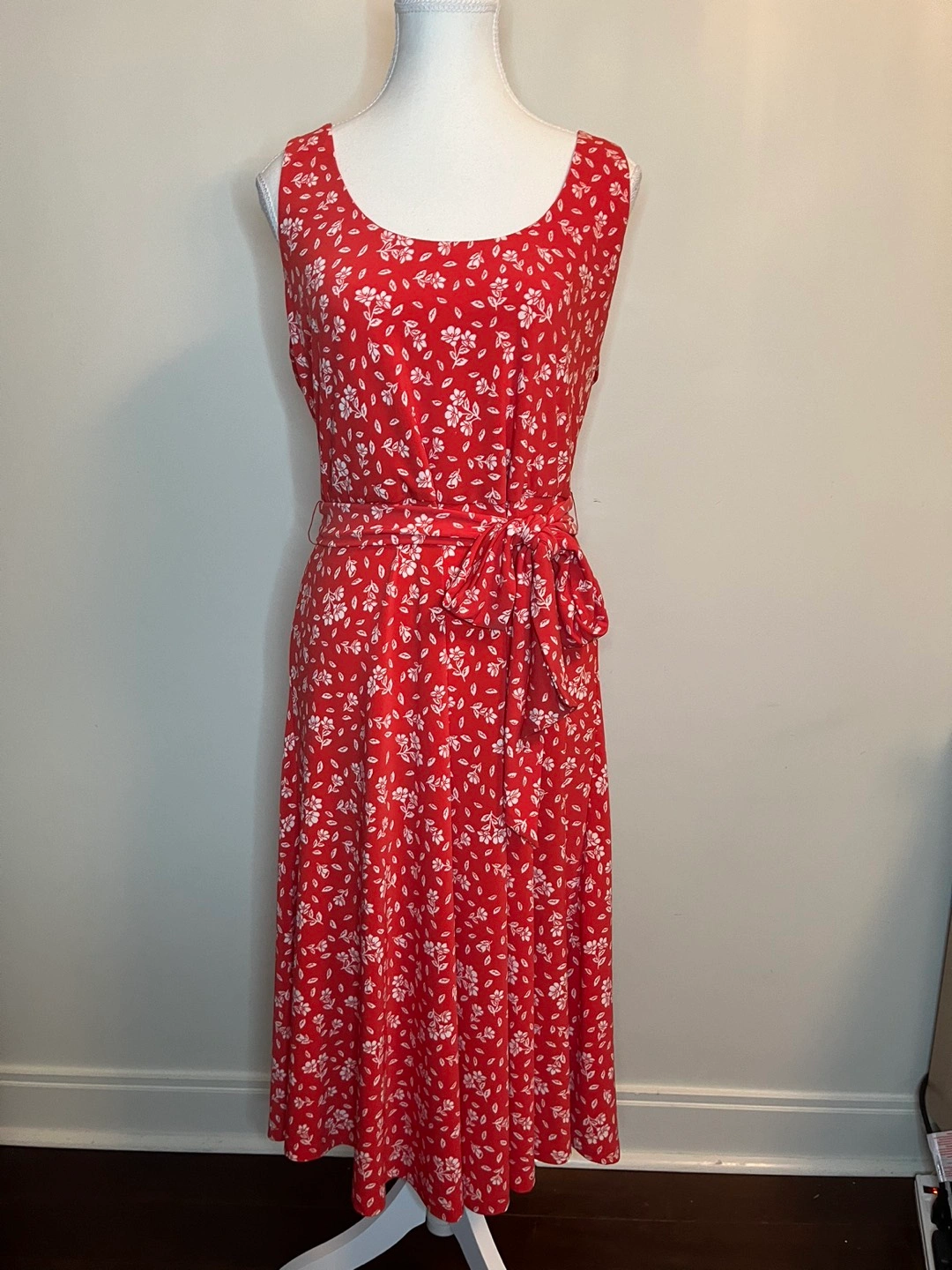 Sleeveless Floral Belted A-Line Dress- preowned in excellent condition.