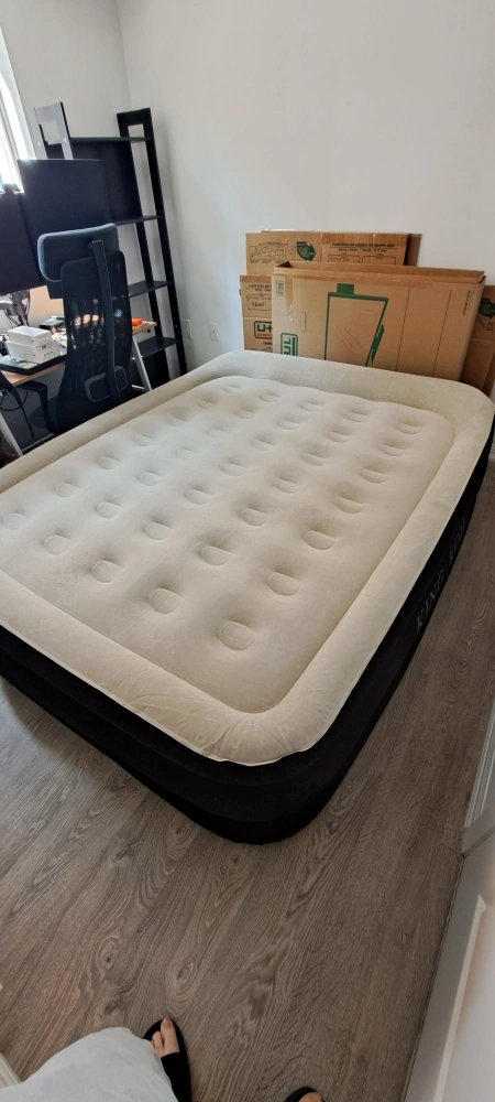 This is one of the best air mattresses out there, not like a crappy one from Canadian Tire. It inflates to the size of a real Queen bed. Includes a built in pump to inflate and deflate in 2 mins.