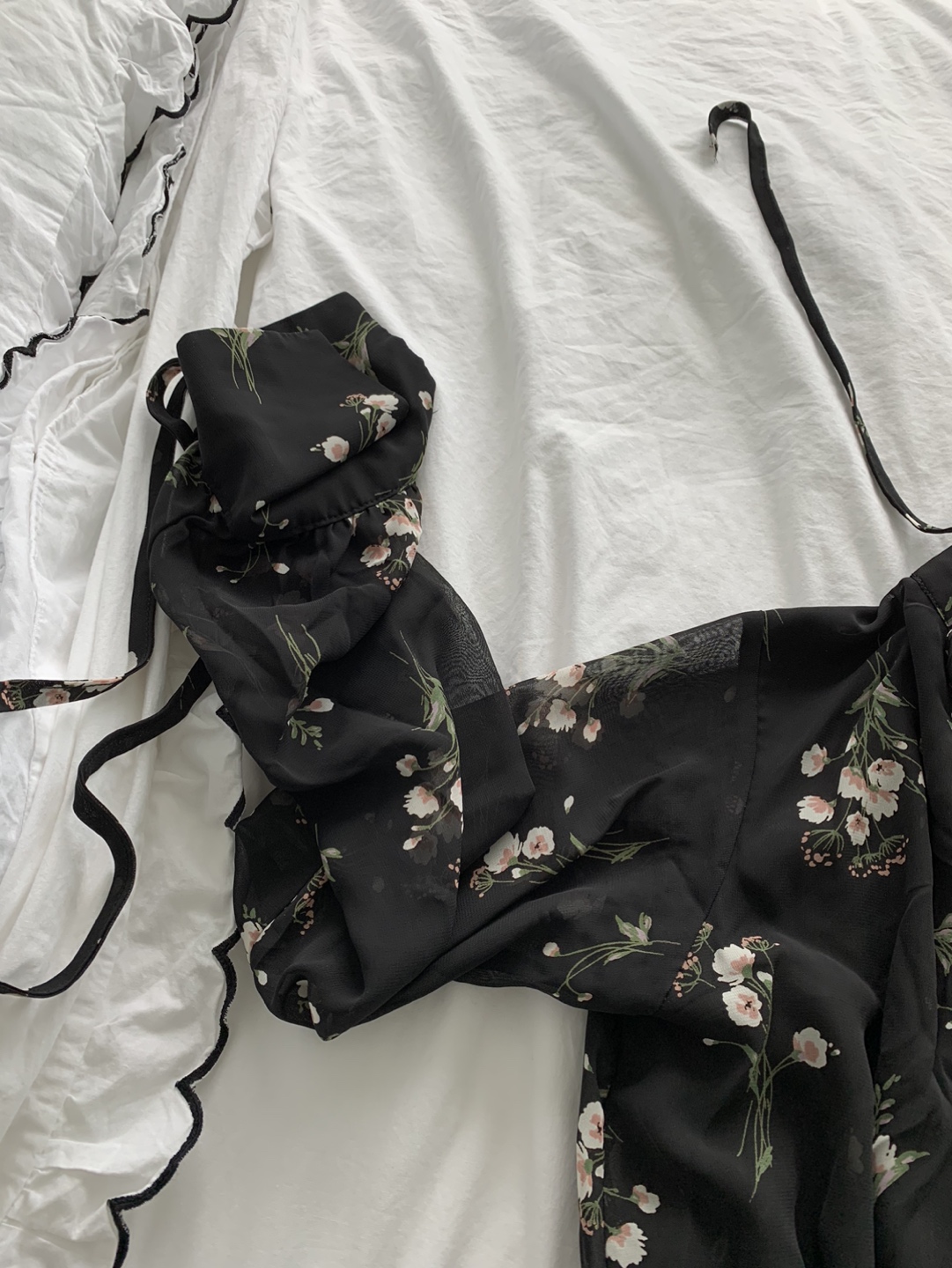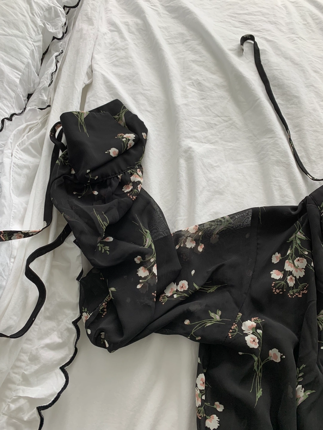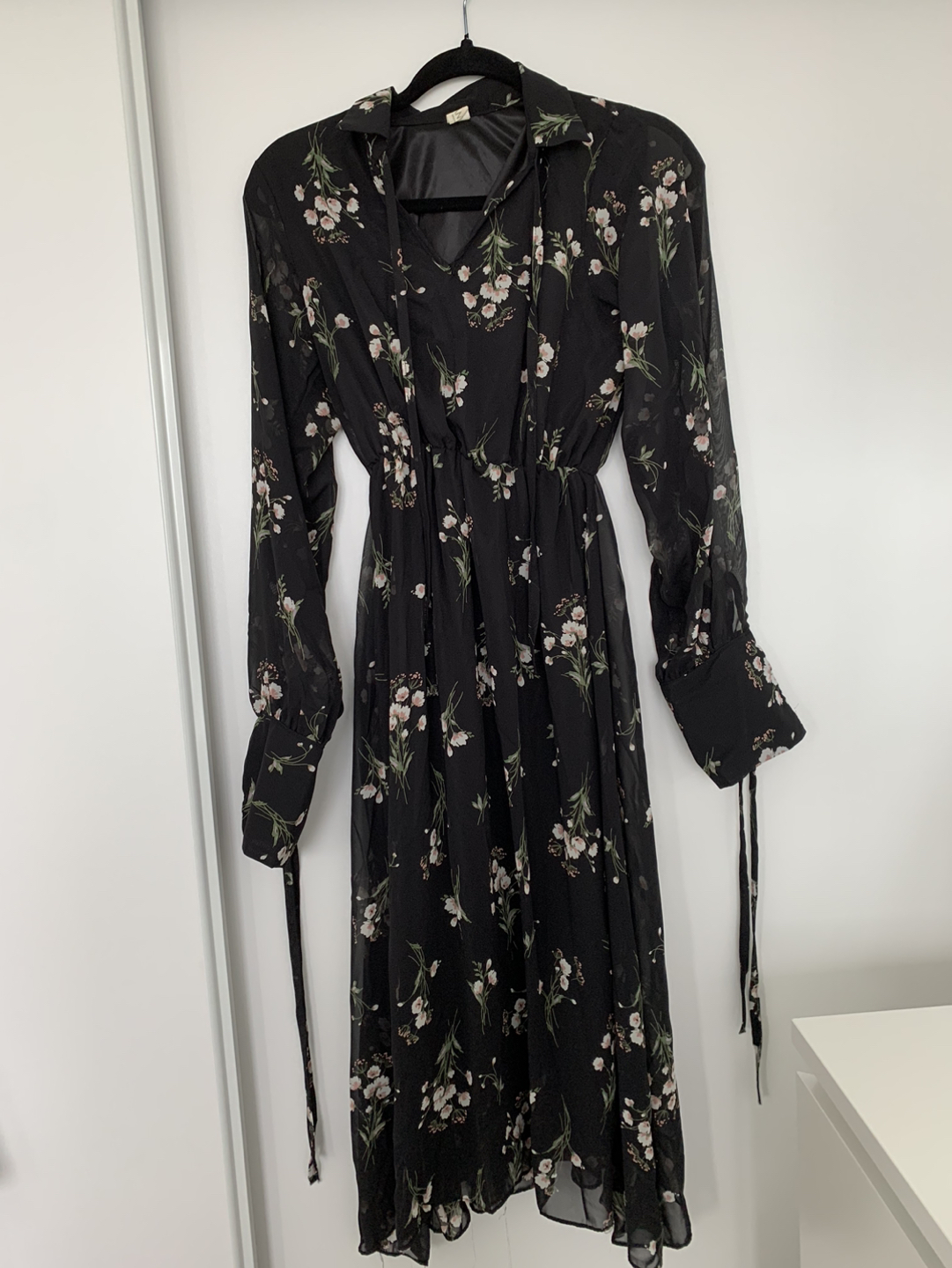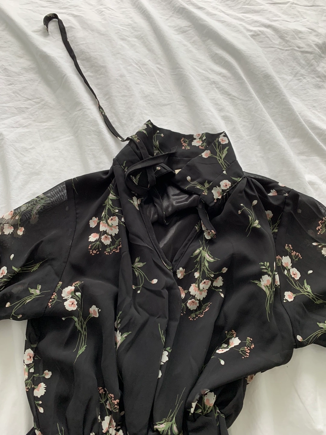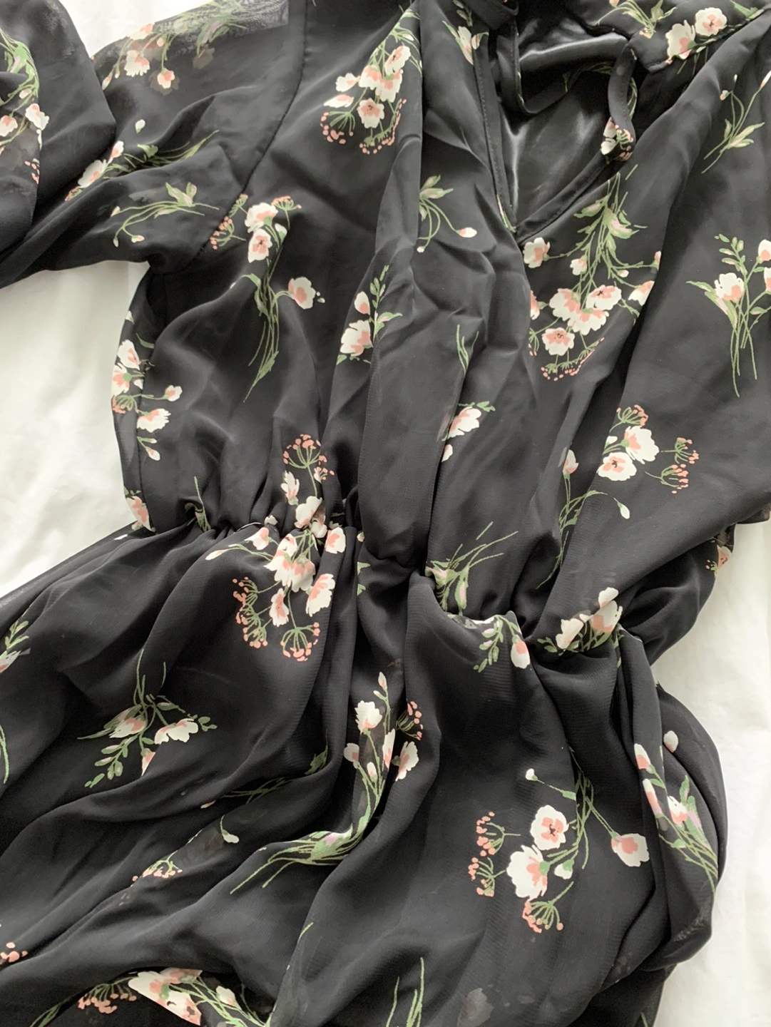 Long black flower chiffon dress within slip