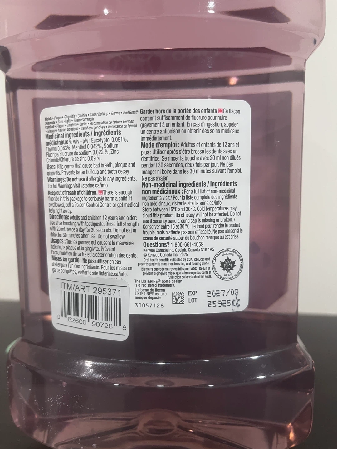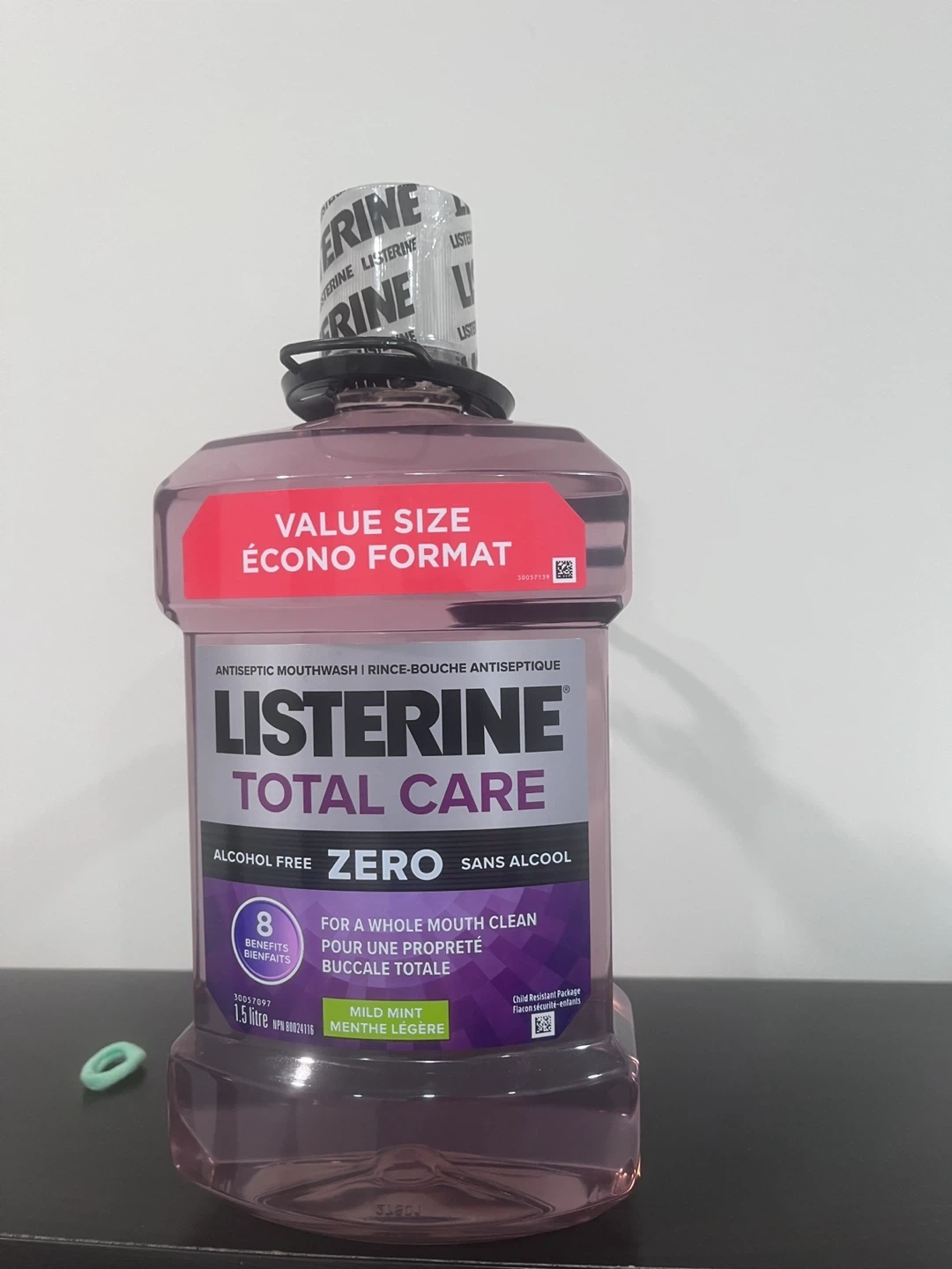 Listerine Total Care Zero Antiseptic Mouthwash in Mild Mint flavour. This value size bottle contains 1.5 litres and is alcohol-free. It provides a whole mouth clean with 8 benefits.expiry is on 2027/09