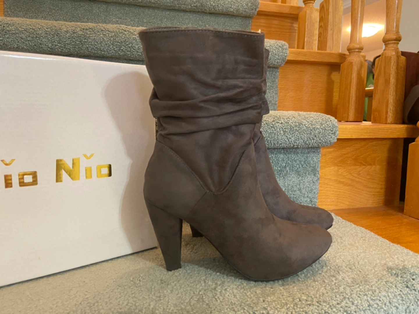 Nio Nio Dark Grey Faux Suede Heel Boots NEW