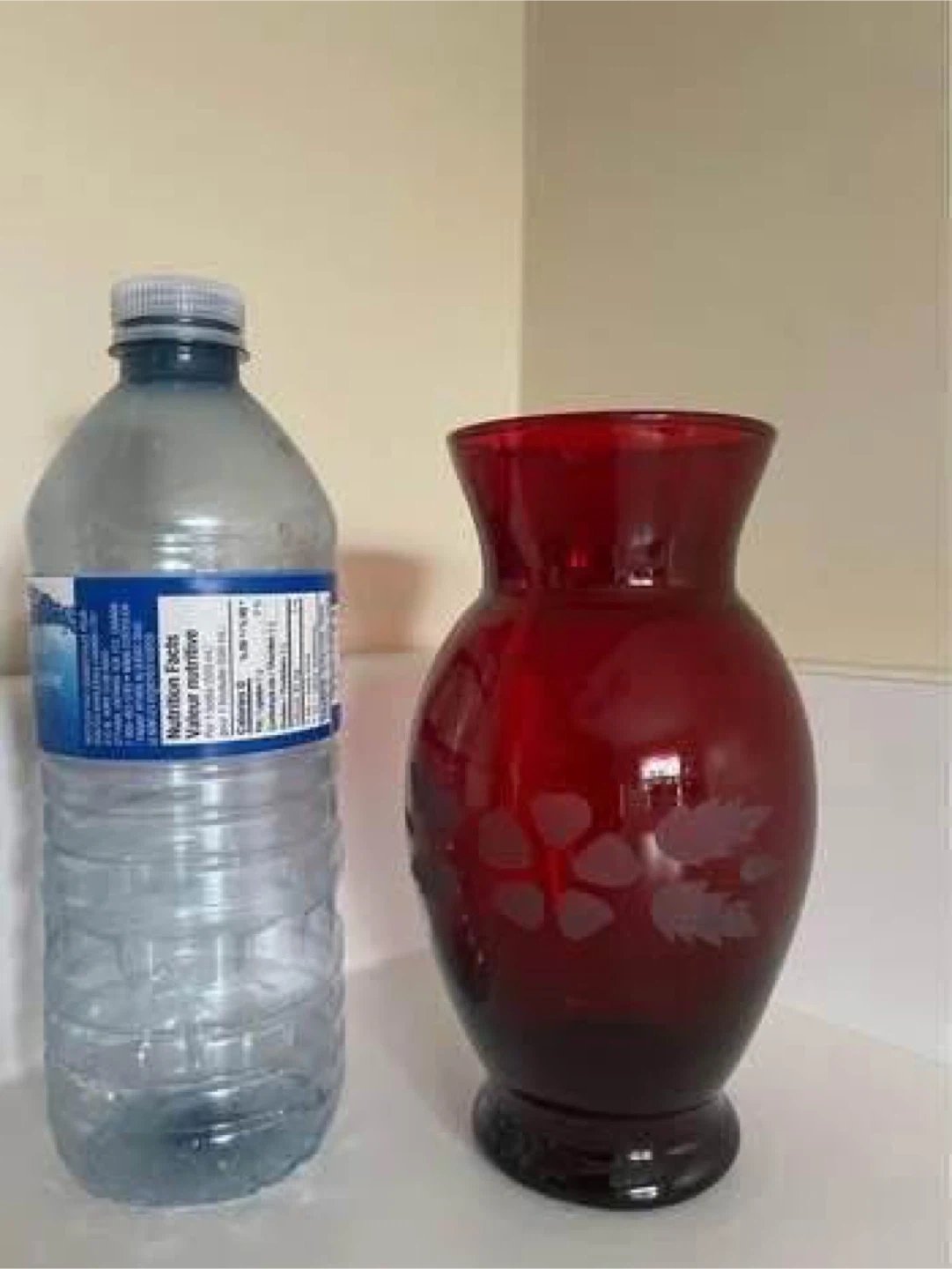 Red Glass Vase with Flower Design