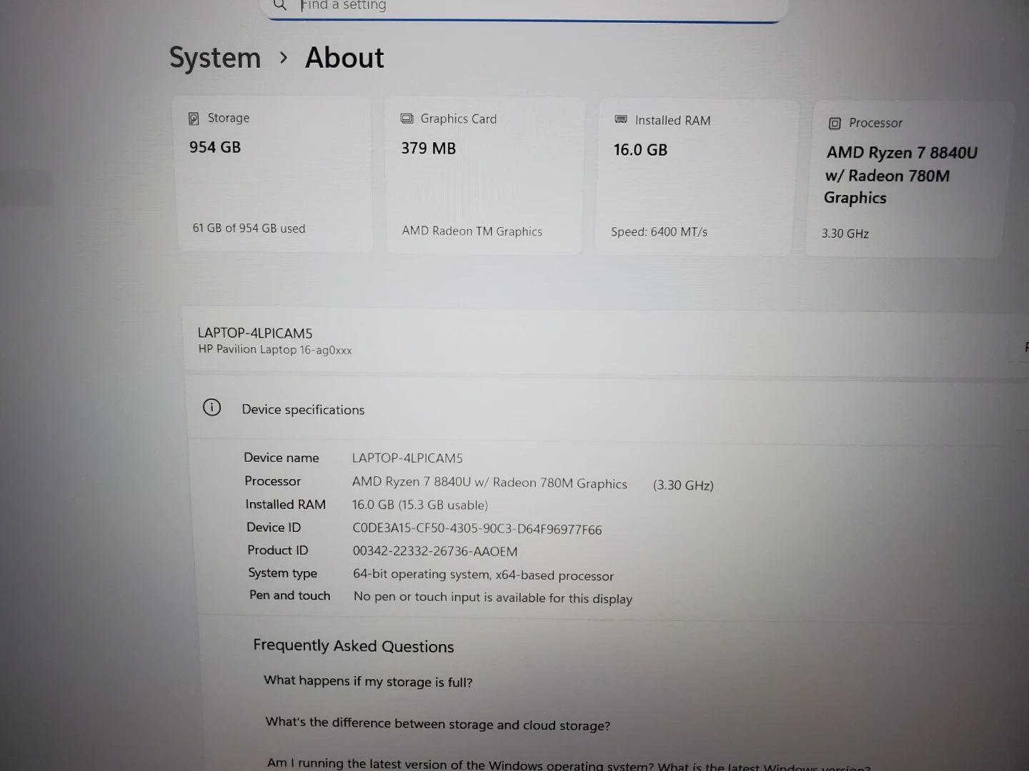 - AMD Ryzen 7-8840U (3.30GHz, 8 cores)