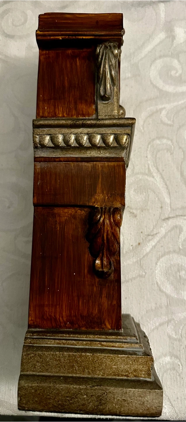 Here's a wooden decorative quartz table clock. It's in great condition and would look lovely on a desk or shelf. The clock has a classic design with Roman numerals. $30 OBO