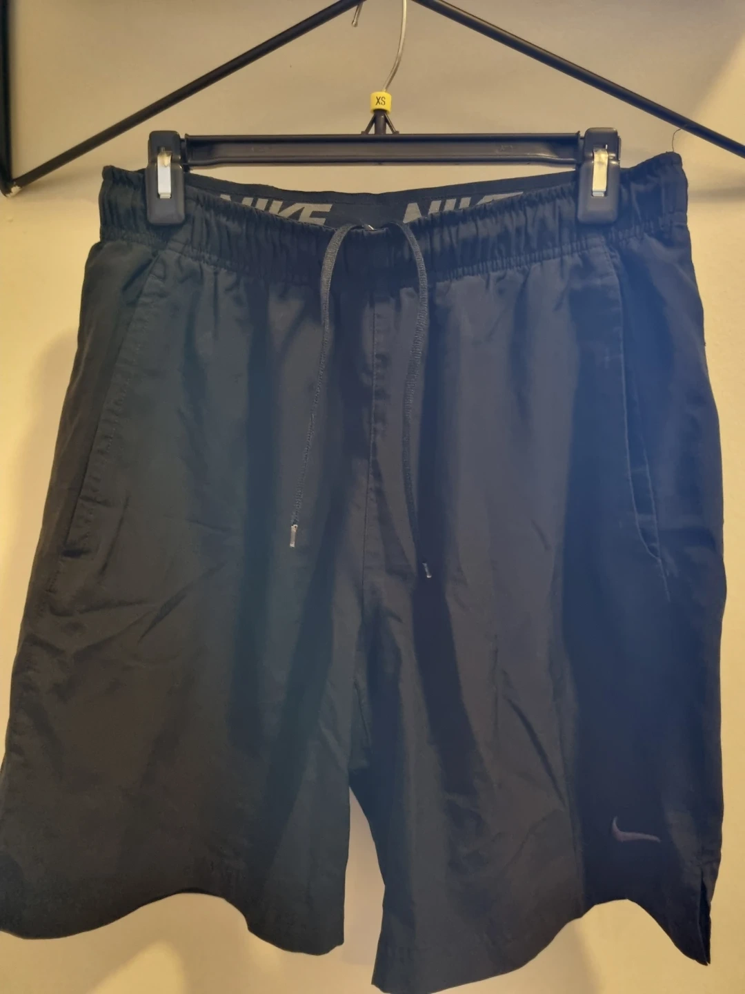 These are Nike Dri-FIT running shorts in black. They're a size medium with an elastic waistband and drawstring.