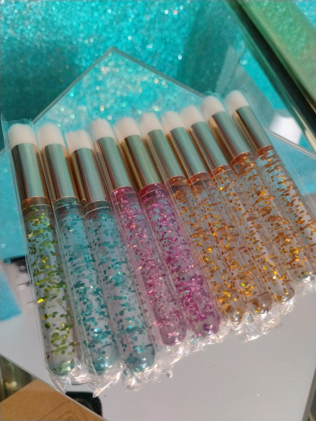 Set of 10 Glitter Handle Makeup / Lash Cleansing Brushes