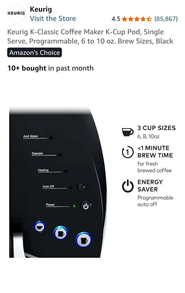 Keurig K-Classic Single Serve Coffee Maker Black