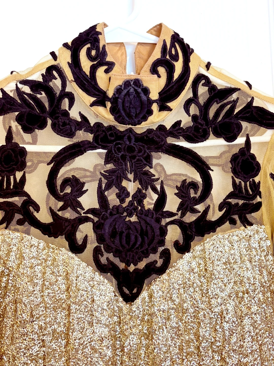 Indian Gold Sequin Dress with Black Velvet Details