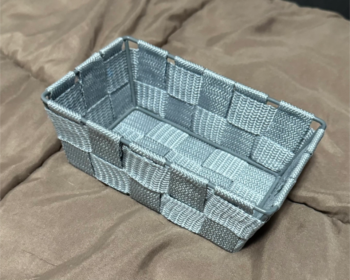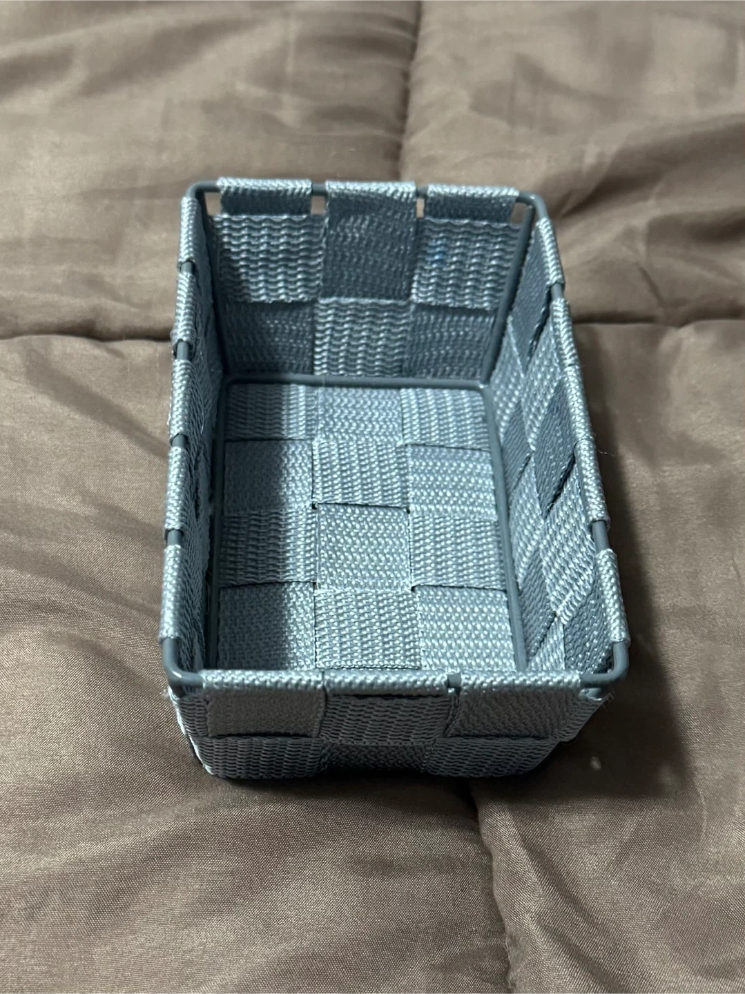 Selling a handy grey woven storage basket! It's in great shape and perfect for organizing small items around the house. The woven design adds a nice touch to any room. It's sturdy and ready to help you declutter!