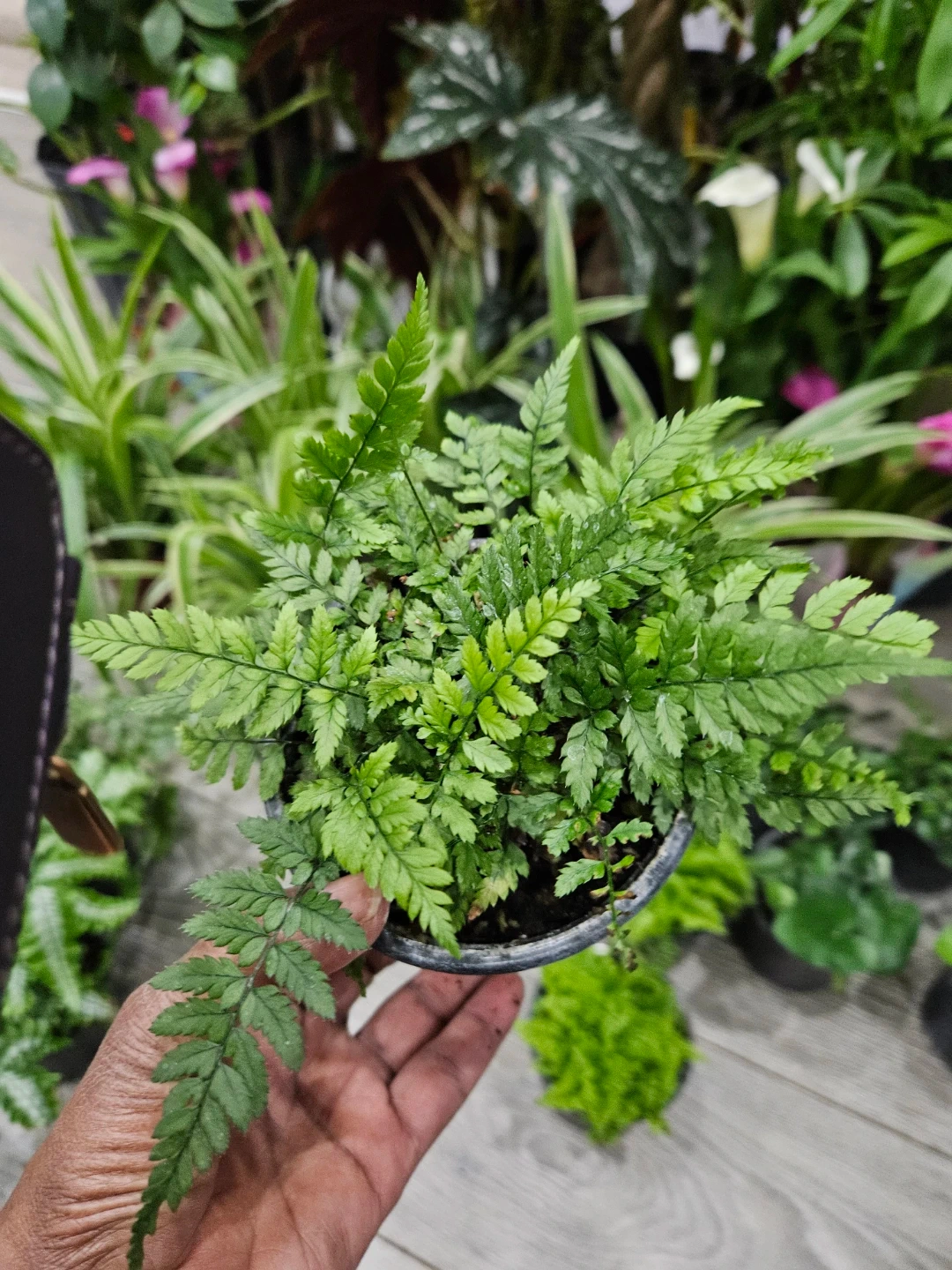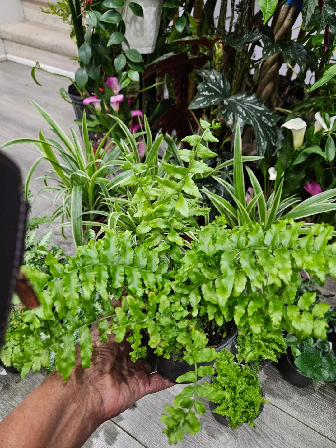A collection of different fern varieties, sold in individual pots. Each plant showcases unique foliage textures and patterns. They're perfect for adding greenery to any indoor space.