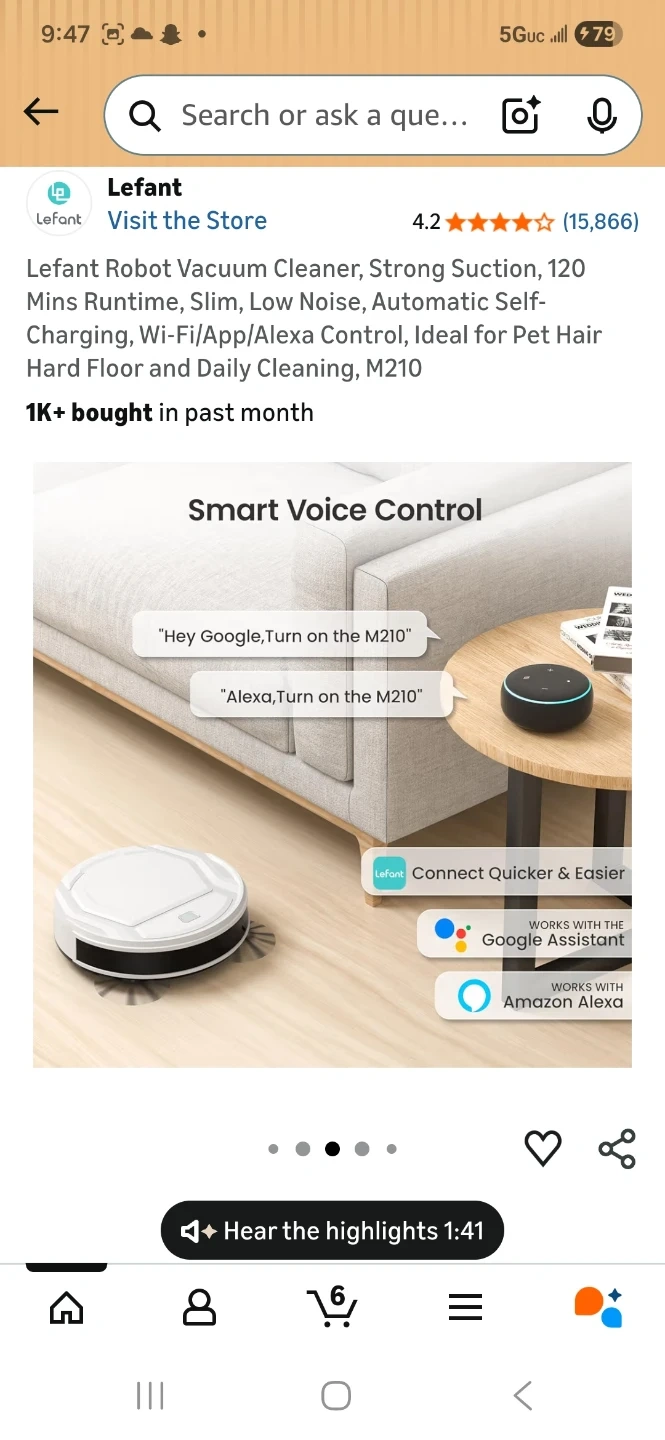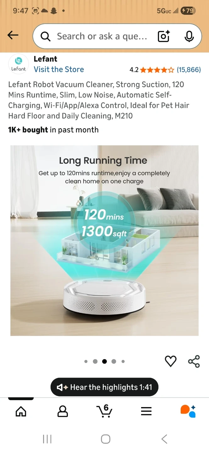 Lefant robot vacuum cleaner with strong suction. It offers 120 minutes runtime and low noise operation. This slim model features automatic self-charging and Wi-Fi/App/Alexa control. It's ideal for pet hair on hard floors.