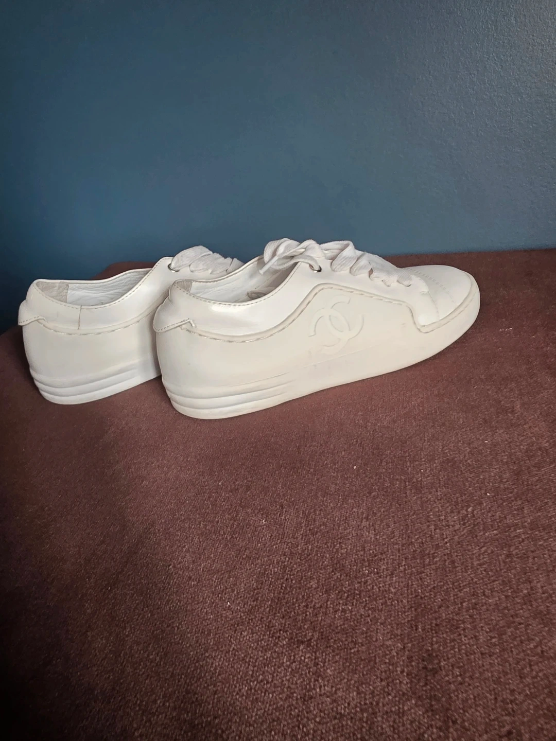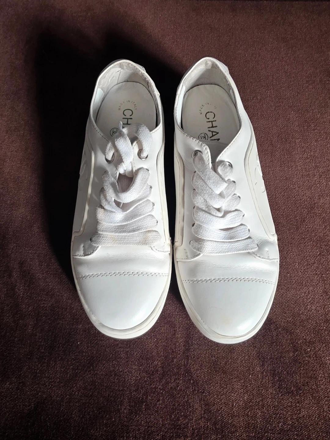 Buy & SellChanel White Leather CC Logo SneakersChanel White Leather CC Logo Sneakers$40Classic Chanel white leather sneakers. These casual shoes feature the iconic CC logo embossed on the side and a rubber sole. Made in Italy.ConditionGoodSize6WHERE TO MEETshoppers drug martView MapSELLERverifiedsharonRural Vaughan600 reviews1 chats·2 favorites·15 viewsSEND CHAT TO SELLERHi sharon! I’m interested in your listing.Hi sharon! I’m interested in your listing.Get the Karrot app to chatSign In to chat