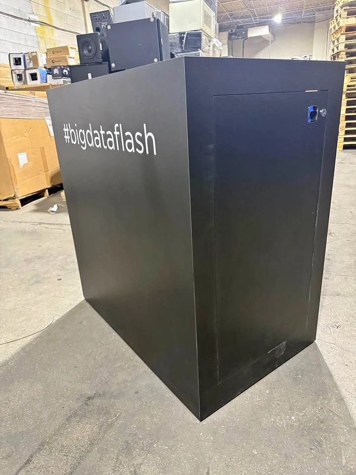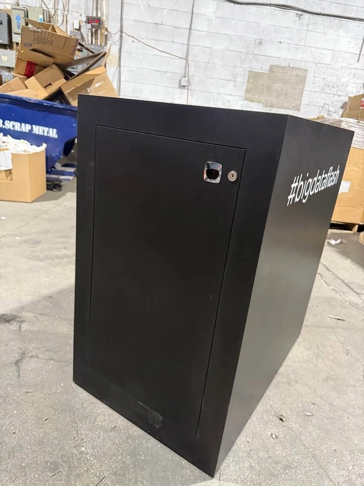 Solid commercial wooden cabinet with locking door. Originally used to house tech / AV equipment. Heavy-duty wood / MDF. Lock & key included. Clean black finish. Cable hole at bottom for power/data. Very sturdy – not cheap furniture. Dimensions: Width: 2 ft, Height: 3 ft 4 in, Depth: 3 ft 2 in. Perfect for: Server or networking gear, AV / DJ equipment, Security systems, Office or warehouse storage, Custom builds. Branding on side (“#bigdataflash”) — can be covered or removed. Pickup only. Available now – priced to sell.