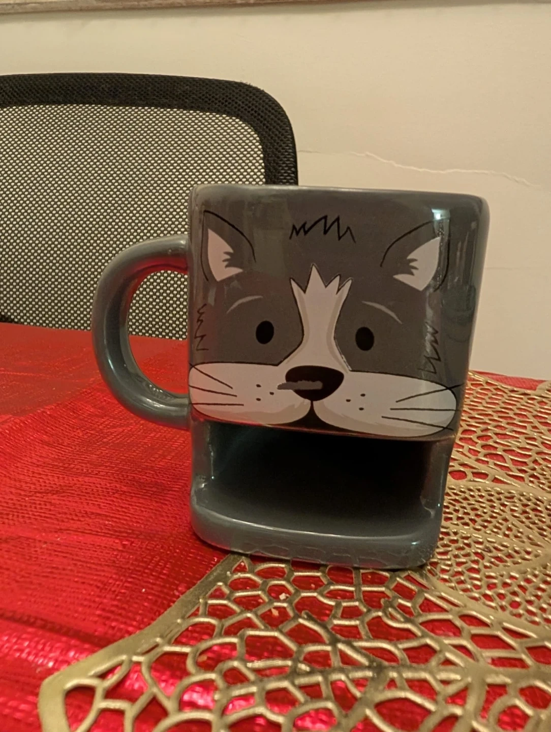 I'm selling a super cute Fizz Creations cat mug! It's in great condition and ready for a new home. The mug features a grey cat face design. Perfect for any cat lover!