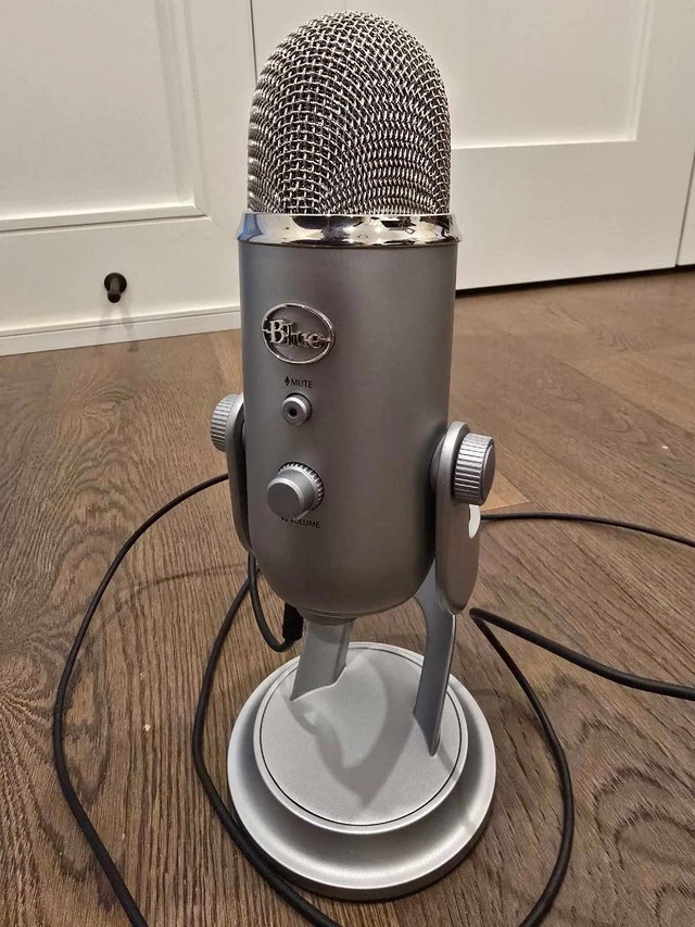 Selling my Blue Yeti USB Microphone in the classic silver finish. This is one of the most versatile microphones on the market, perfect for podcasting, YouTube/Twitch streaming, music recording, or just having crystal-clear audio for Zoom and Teams calls.