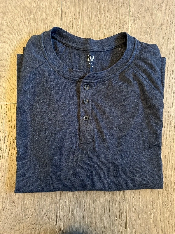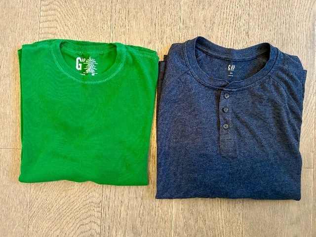 Two men's GAP shirts available. Green is size large, navy blue is extra large. Comfortable cotton-poly blend, machine washable. Gently used and in great shape. Pickup in Brampton, near Queen and Kennedy.