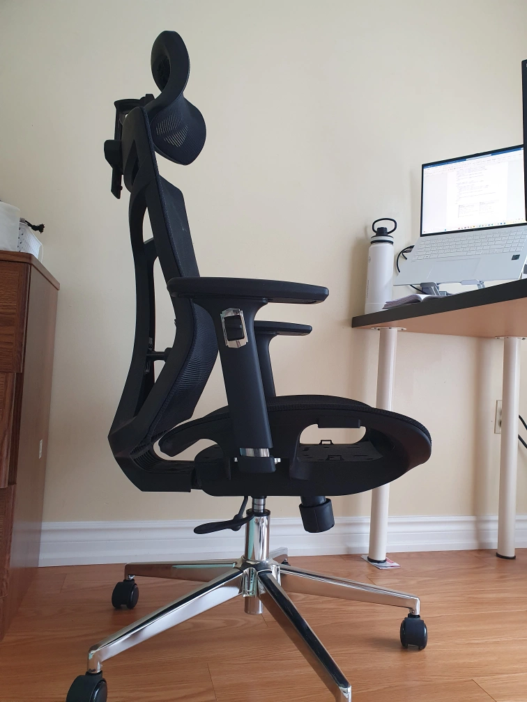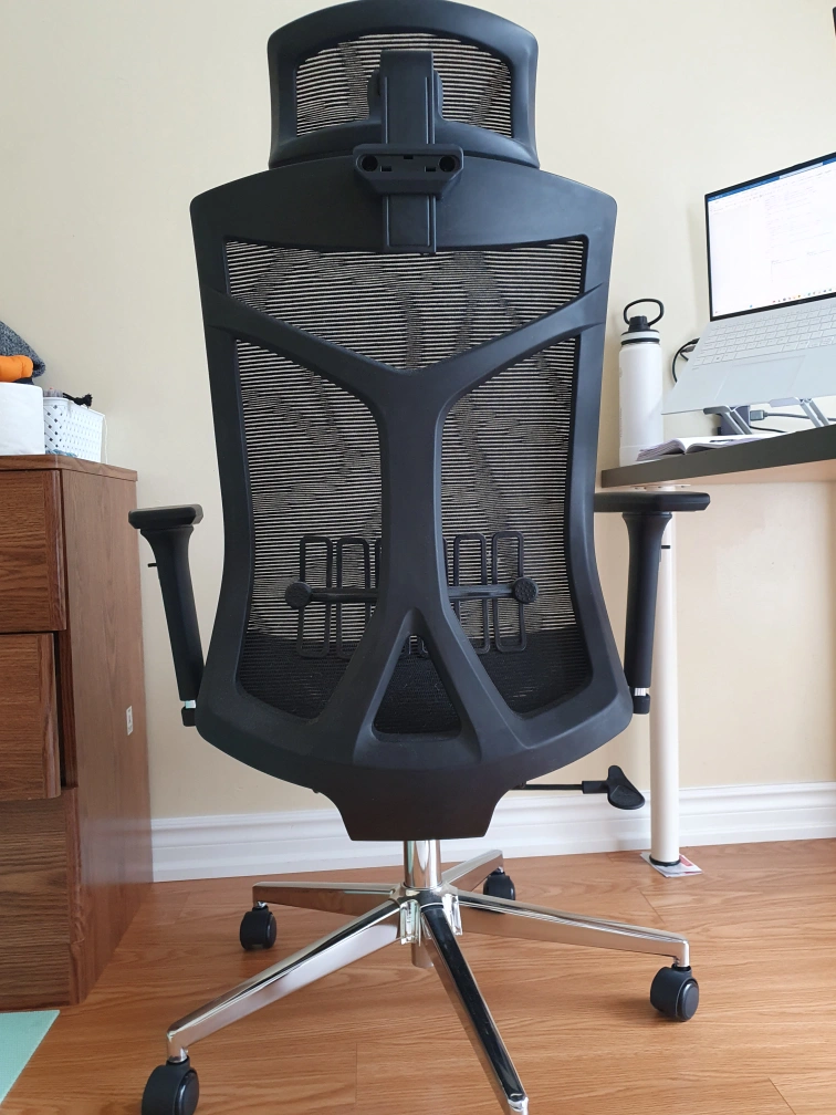 Comfortable and supportive mesh office chair. Features adjustable headrest and armrests. Five-star base with smooth-rolling casters. Ideal for home or office use.