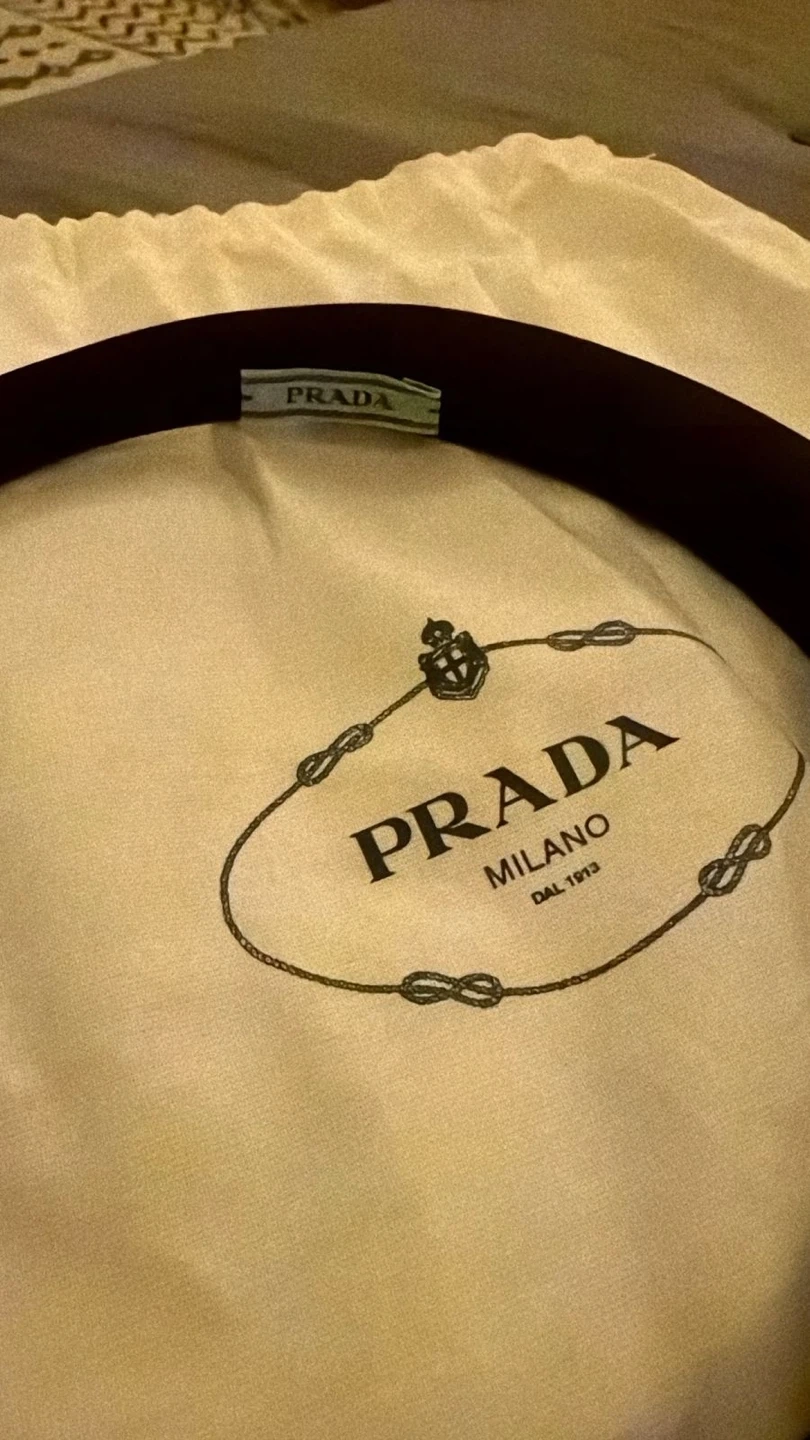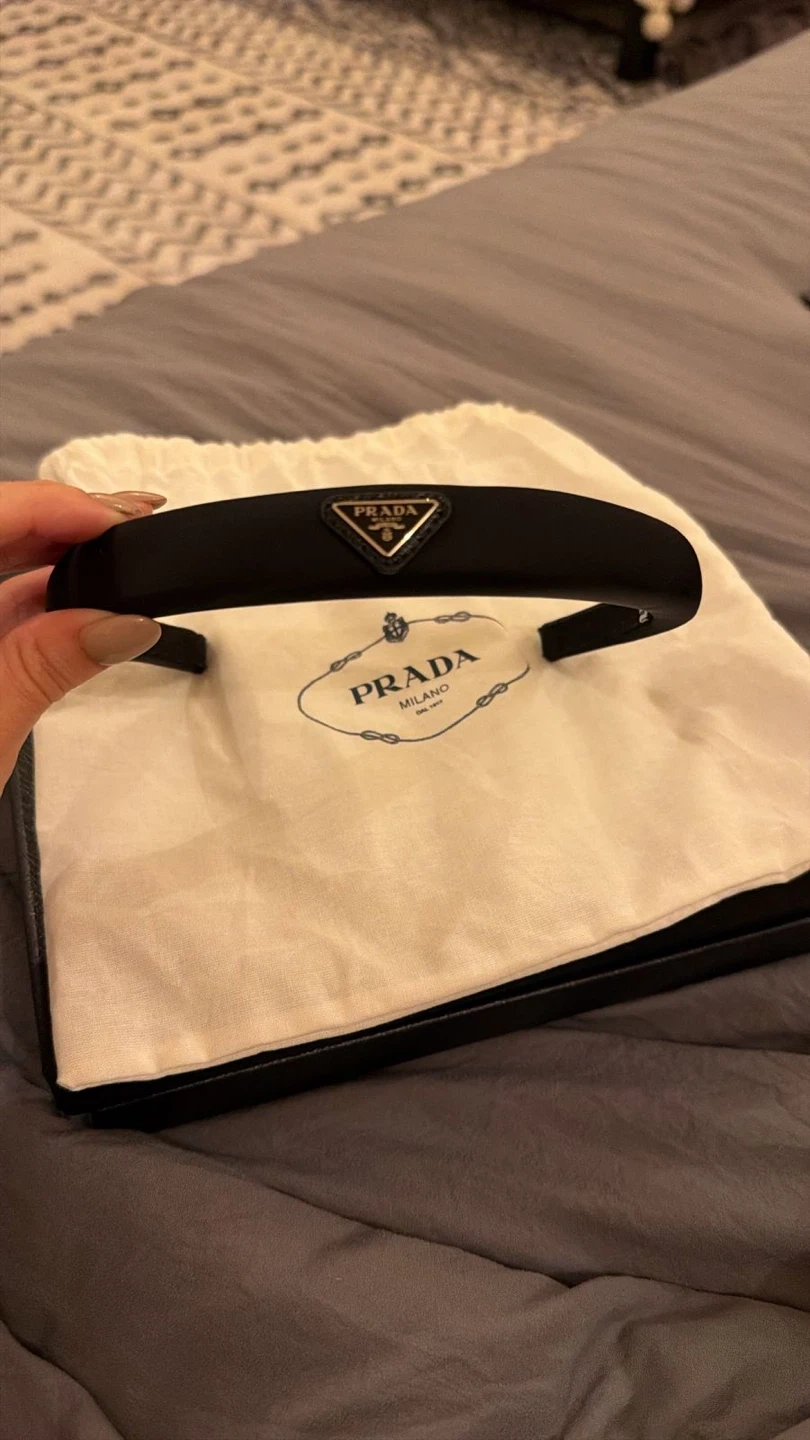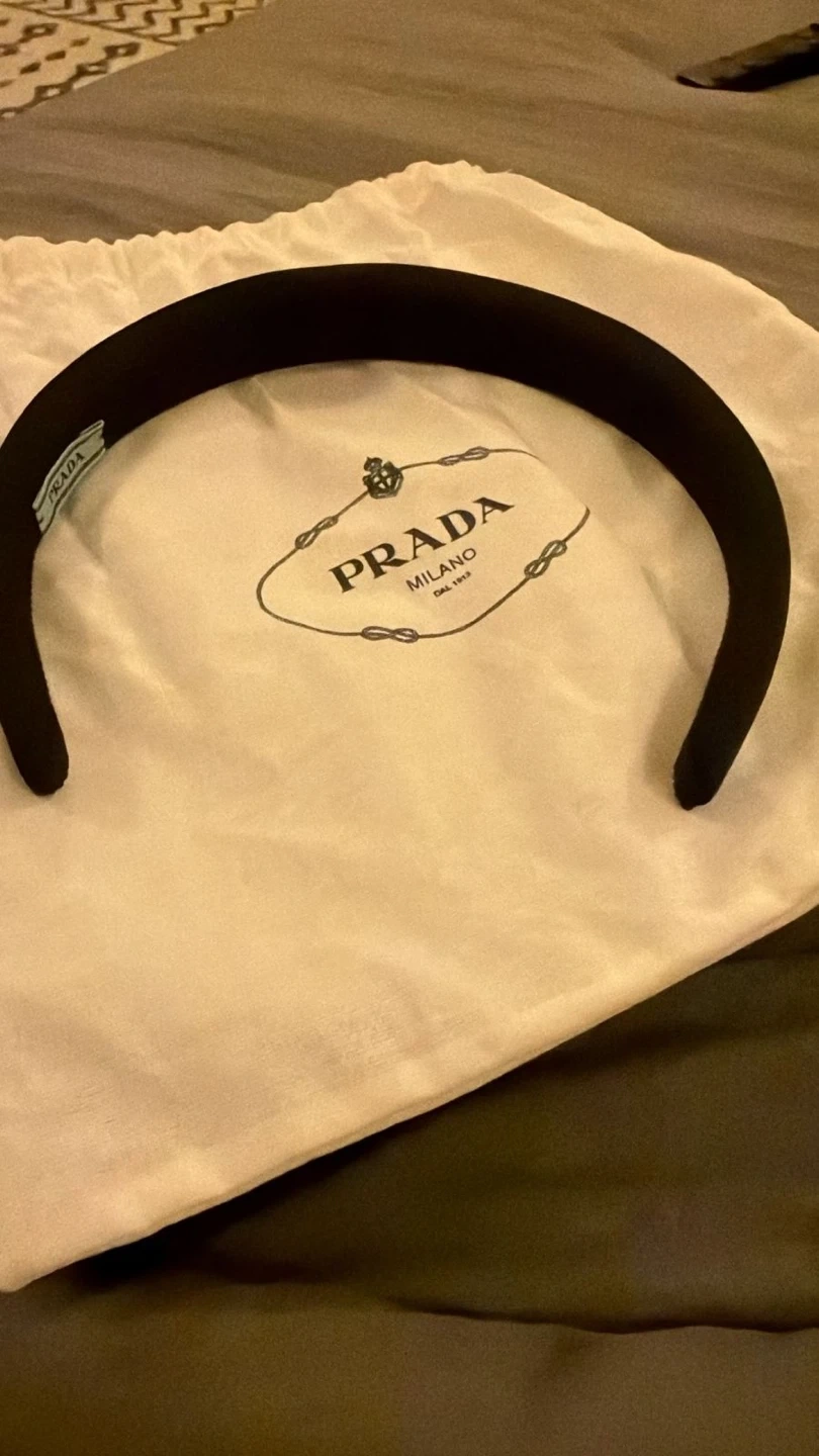 This is a black padded headband from Prada. It comes with its original dust bag and box. A classic accessory for elevating any outfit.