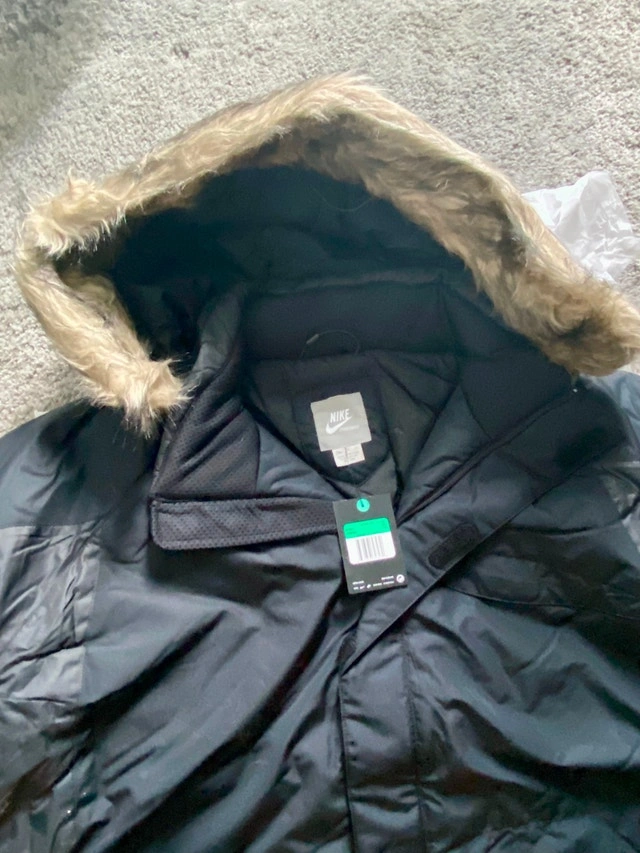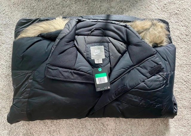 Brand new, never worn Nike insulated parka. Perfect for harsh winter weather! Super warm with a cozy insulated lining and a stylish faux fur–trimmed hood. Size Medium & XL. Price: $100. Pickup: Lakeshore Boulevard West (pickup only).