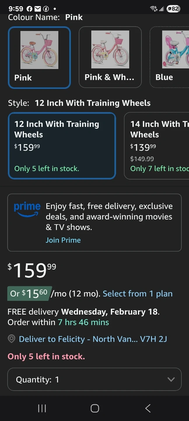 14 Inch Girls Bike w/ Training Wheels brand new